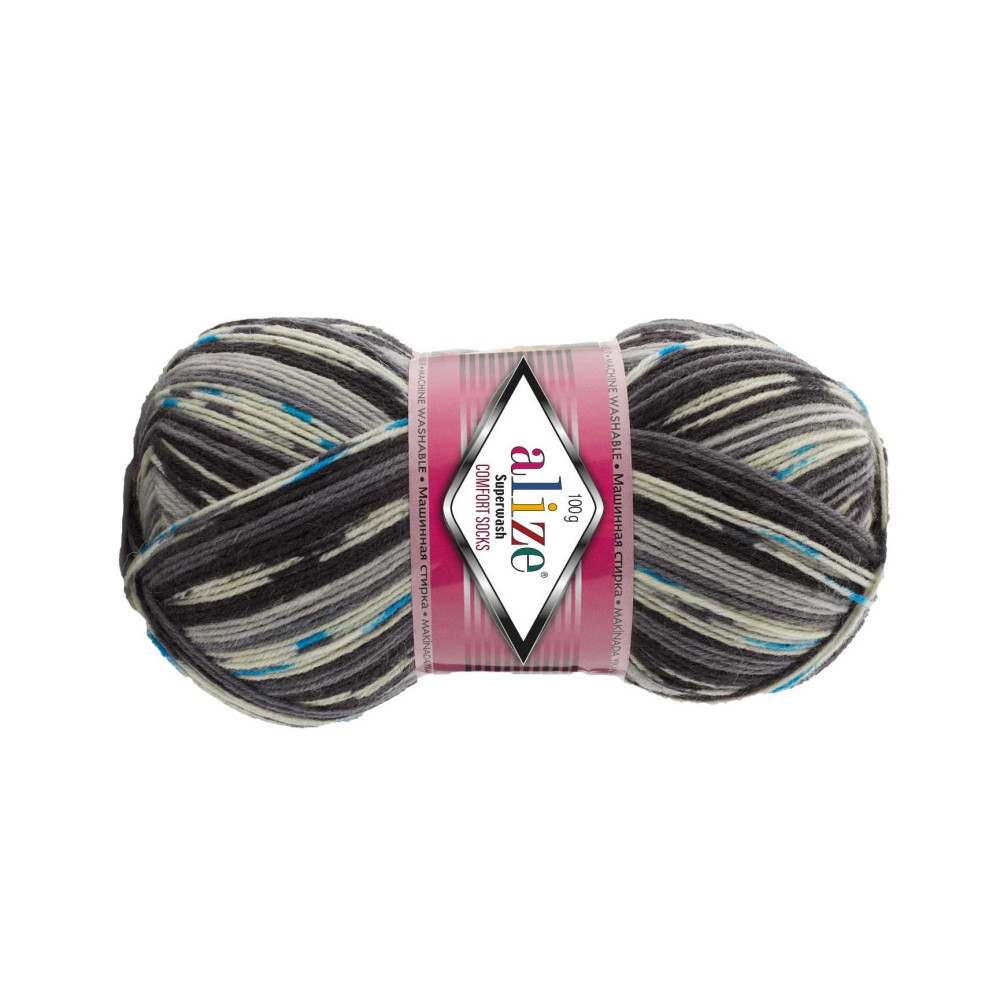 Vidutinio storumo, margi pusvilnės siūlai Alize comfort socks naudojami įvairiems mezginiams. Siūlas puikiai tinkamas megzti įvairiaspalves kojines, kepures ar šalikus.