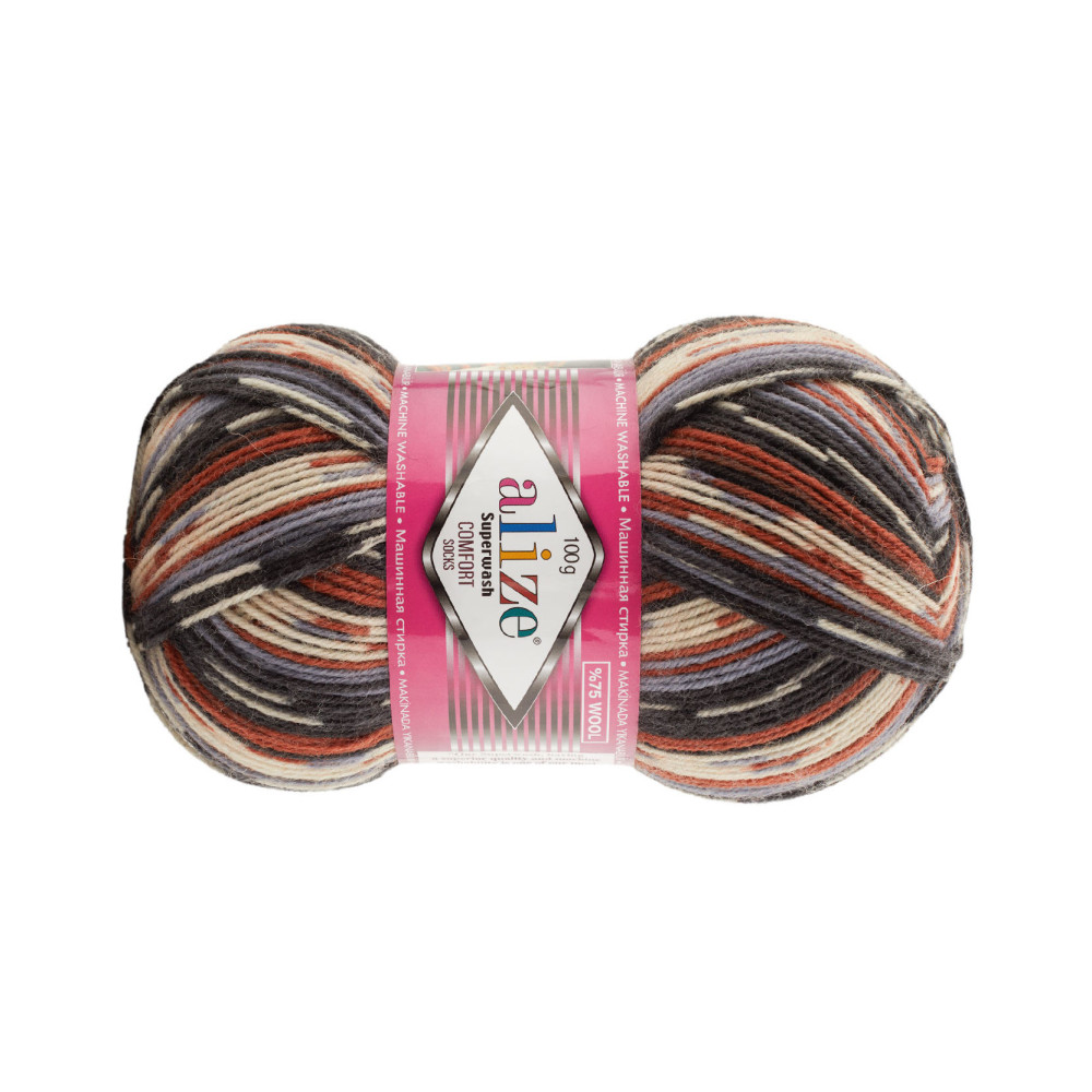 Vidutinio storumo, margi pusvilnės siūlai Alize comfort socks naudojami įvairiems mezginiams. Siūlas puikiai tinkamas megzti įvairiaspalves kojines, kepures ar šalikus.