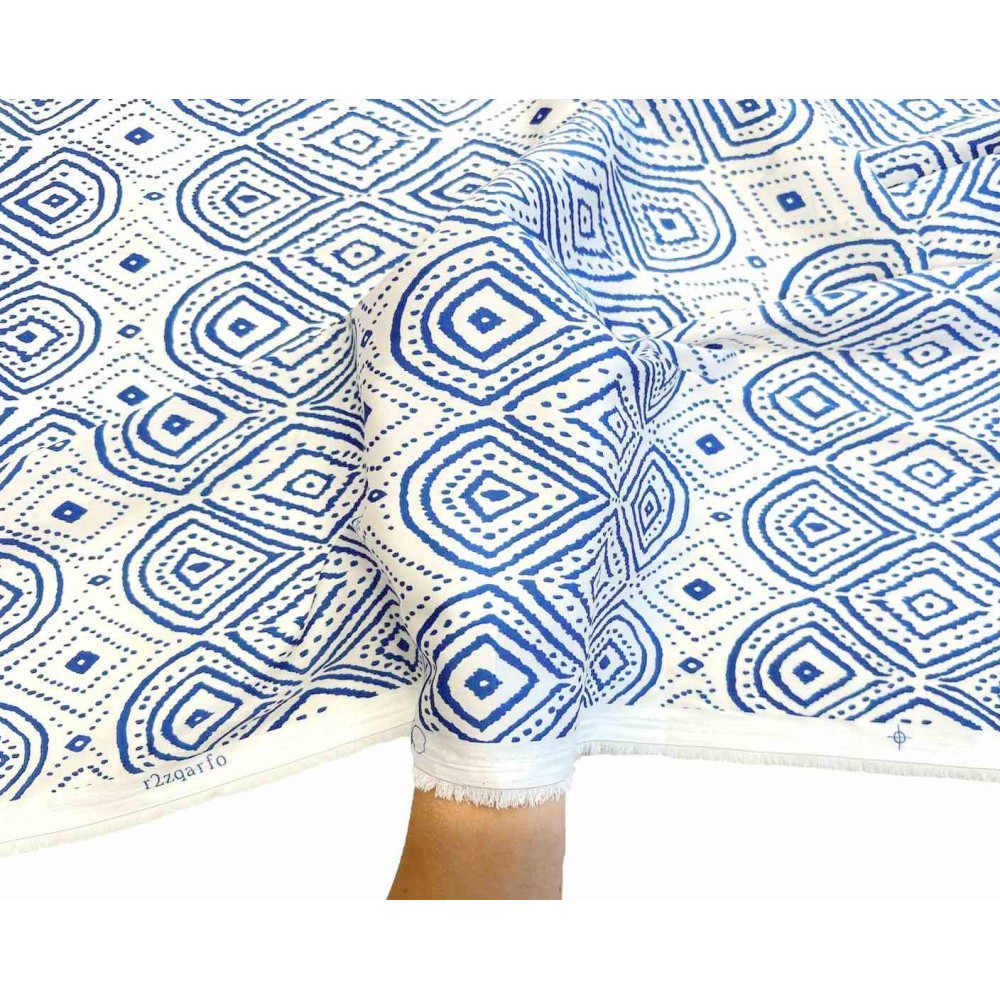 Armani šilkas Mėlyni raštai baltame