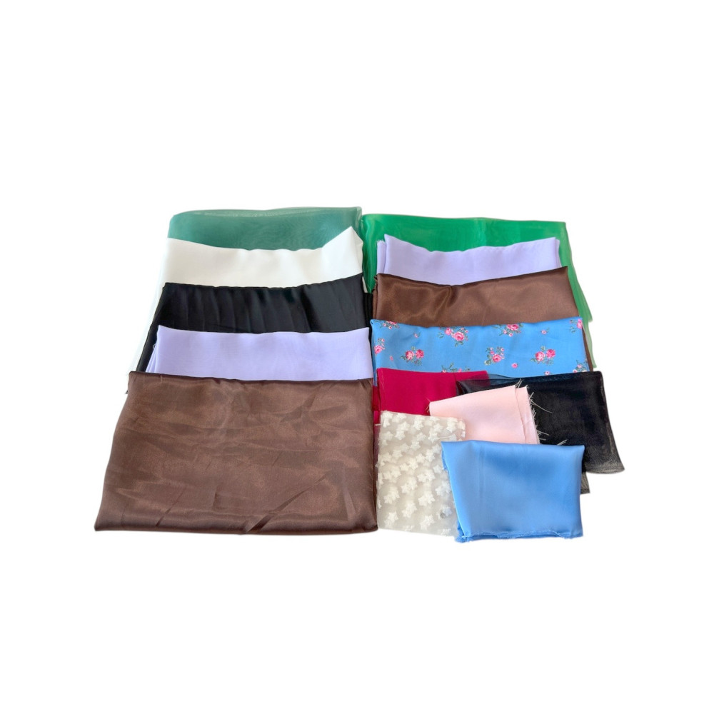 Rinkinį sudaro Armani šilko, šifono ir organzos likučiai.
