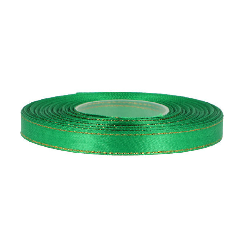 Atlasinės juostelės su auksiniu krašteliu 10mm 27m | 7 spalvos