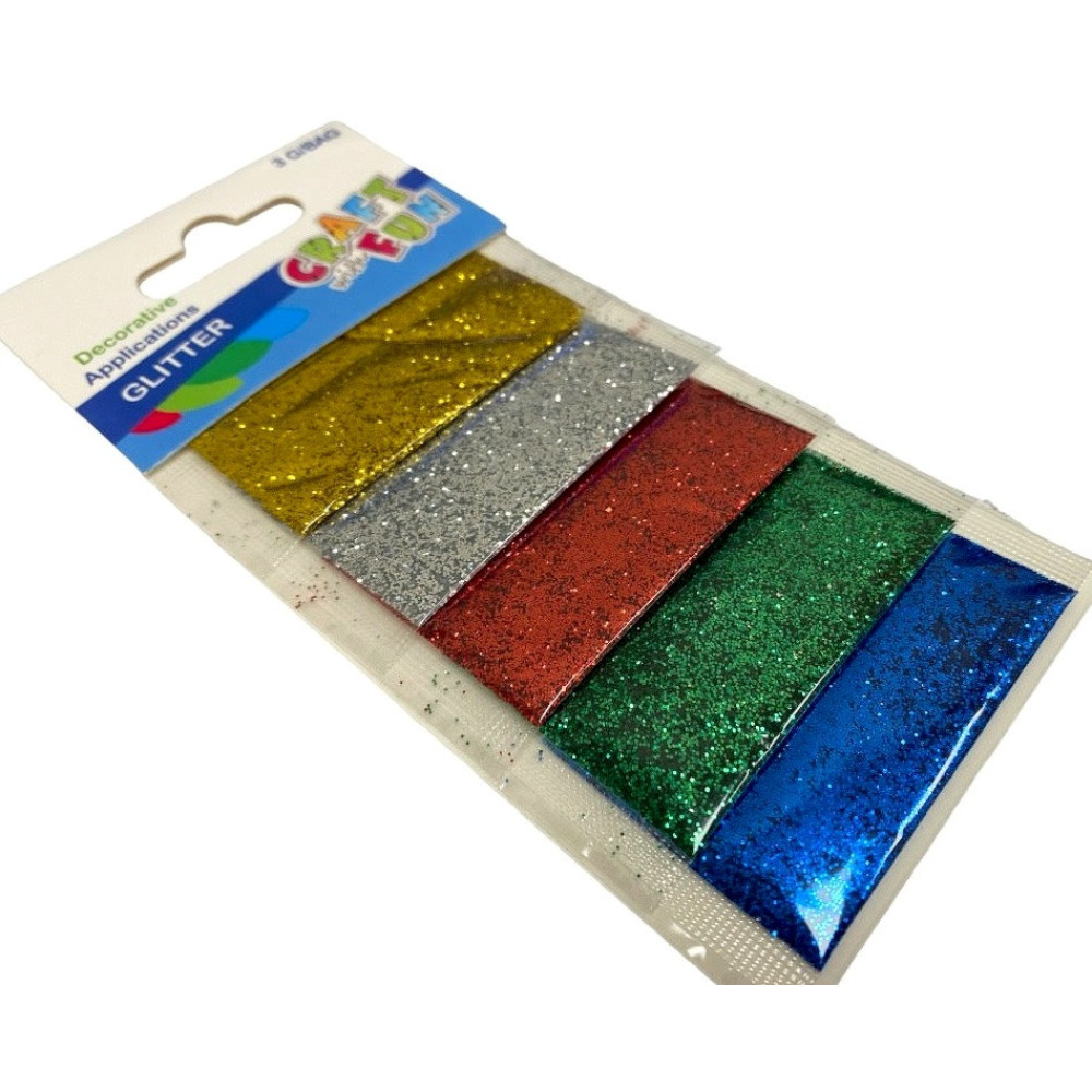Vienos spalvos maišelyje yra 3g. blizgių dulkių.