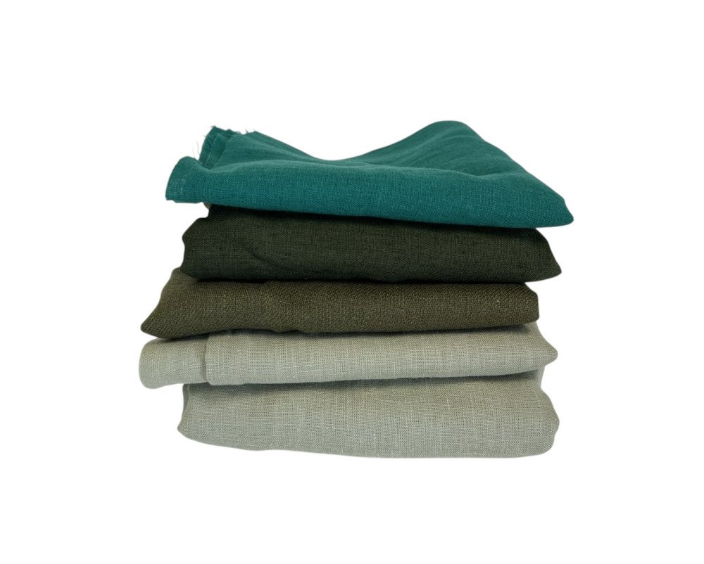 Thicker, thinner linen fabrics of various compositions. Most 100 % linen.