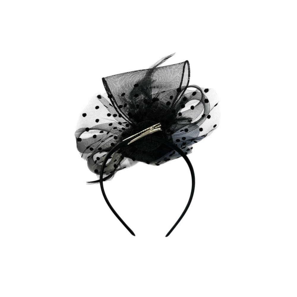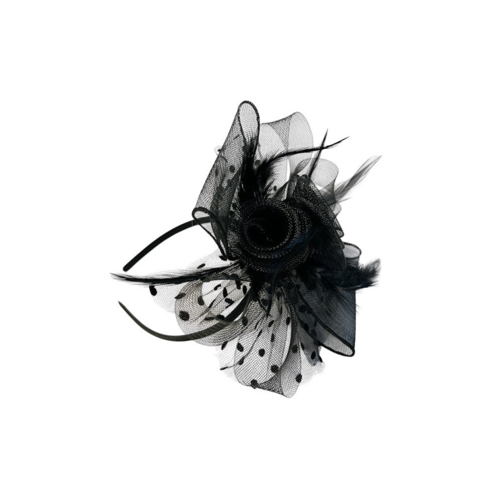 The flower is made from crinoline strip, stem and feathers. The flower can be used as an accessory or as a hair ornament without a bow.
