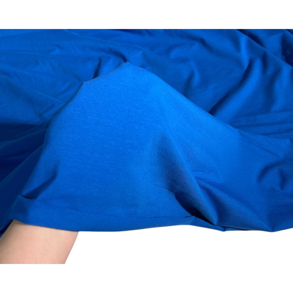 This cotton jersey is thin, soft, pleasant to the touch and stretchy. The fabric has good thermal insulation properties and is breathable.