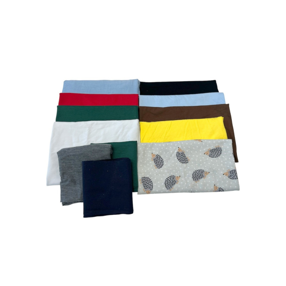 There are 17 residues in the sample. The sample consists of different types of knitwear. Size from 0,13 m to 0,65 m. The residues may be defective. The total is 6,41 m.