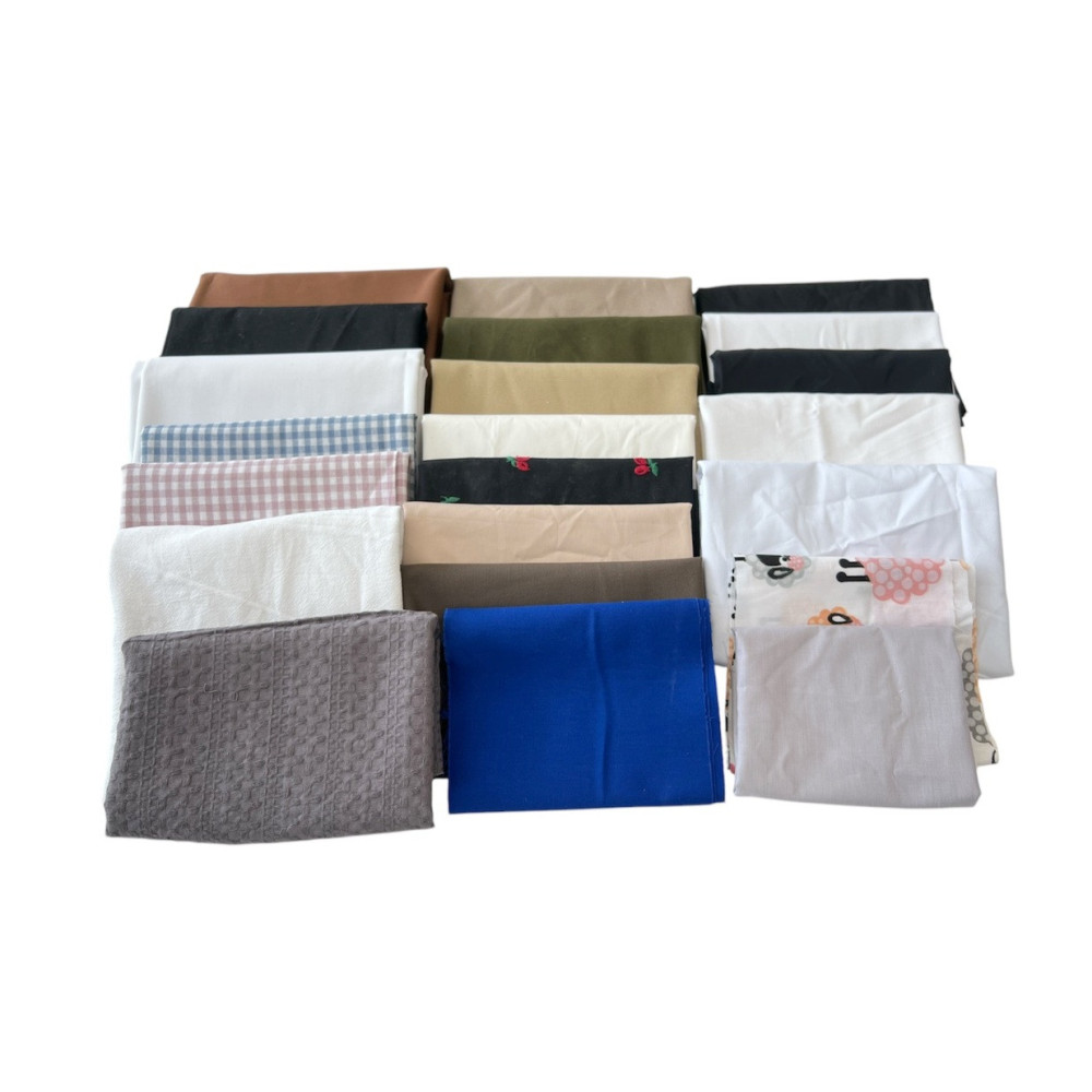 There are 22 remainders in the set. Sizes from 0,13 to 1,71m. The set consists of various cotton fabrics. May have defects - stains. Total quantity (length) 10,72m.