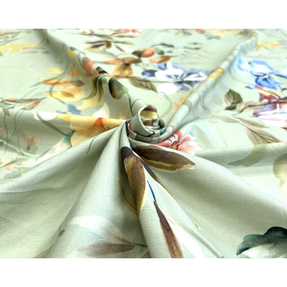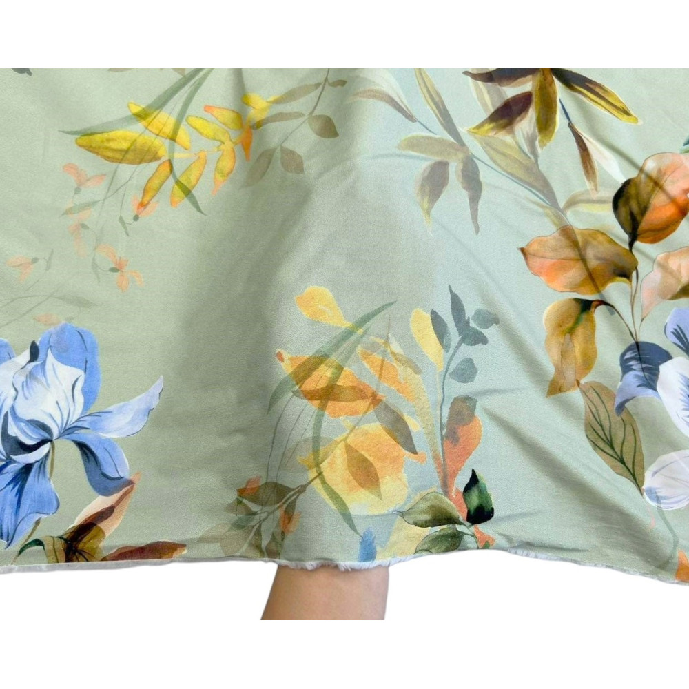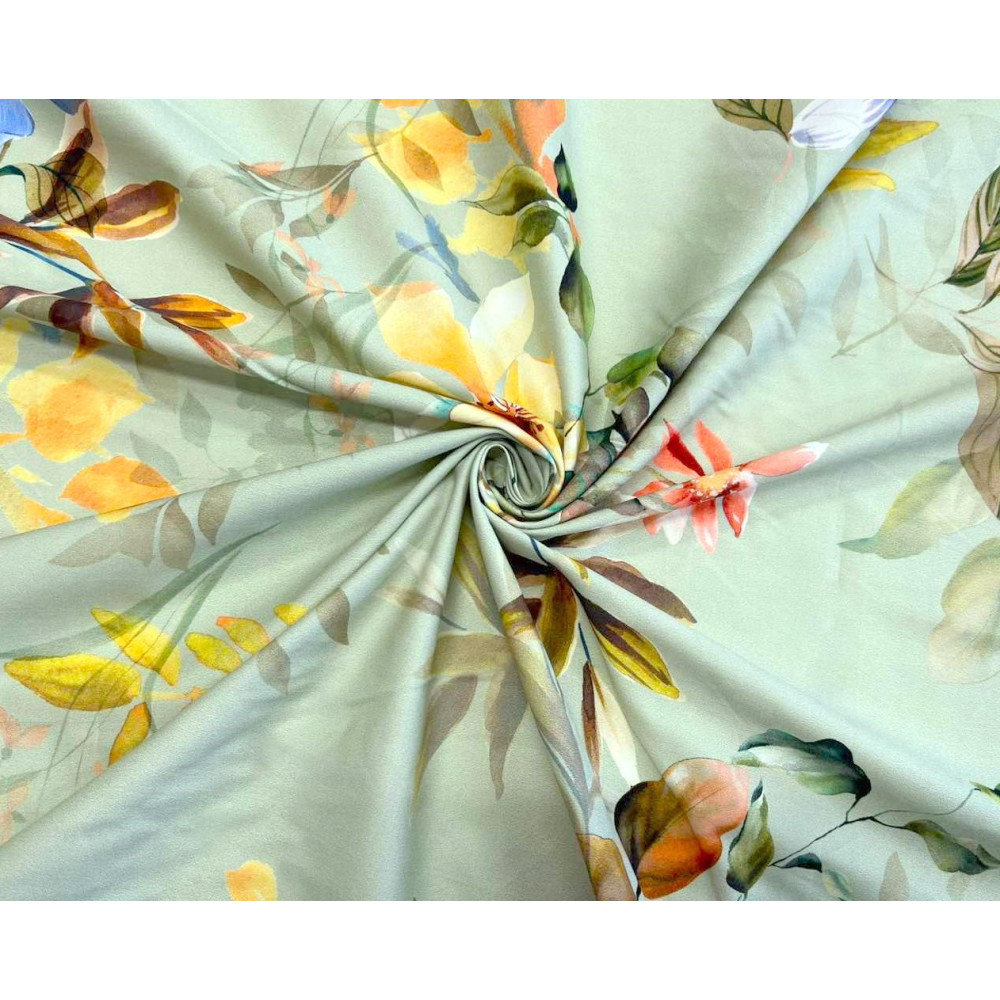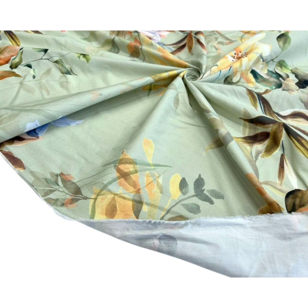 Cotton fabric with elastane Flowers in teal