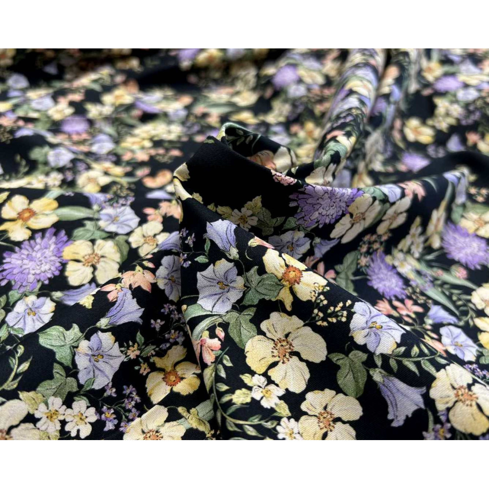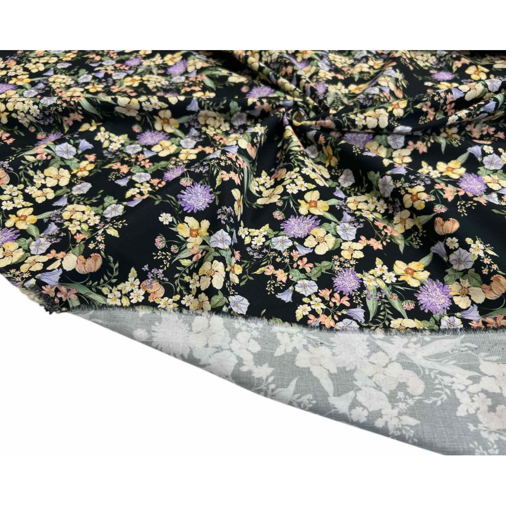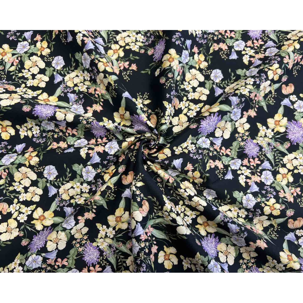 Cotton fabric with elastane Yellow flowers in black