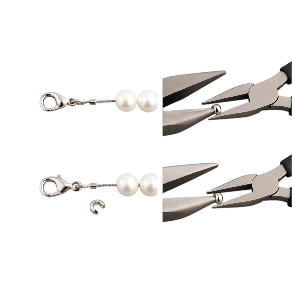 Crimp-on beads can be used as regular beads, to hide clasps or to secure a detail.