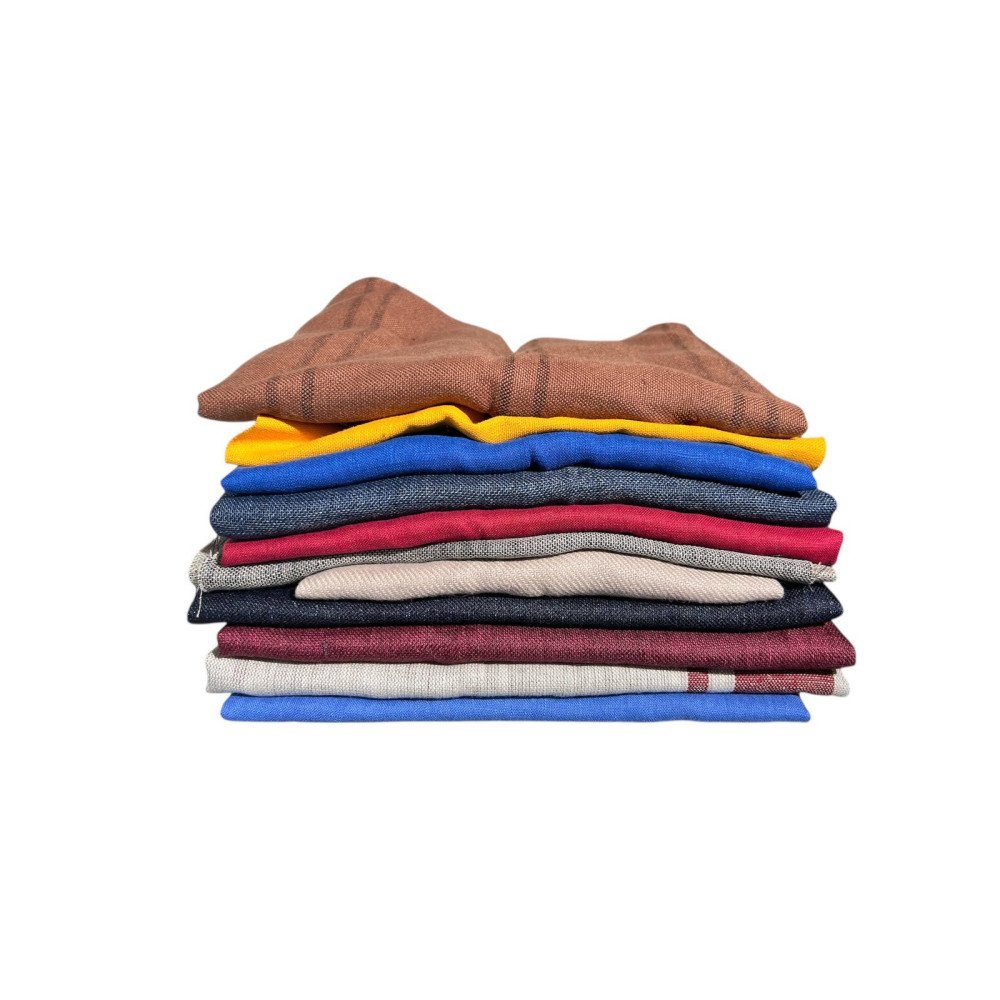 Thicker and thinner linen fabrics of various compositions. Most are 100% linen.