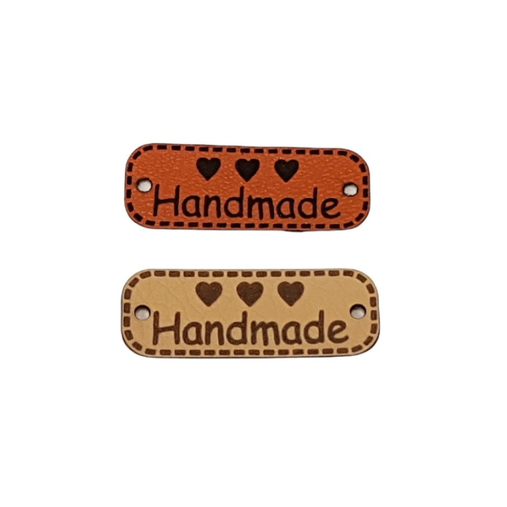 These labels are made of synthetic leather and can be easily attached to any seam, knot or other handicraft.