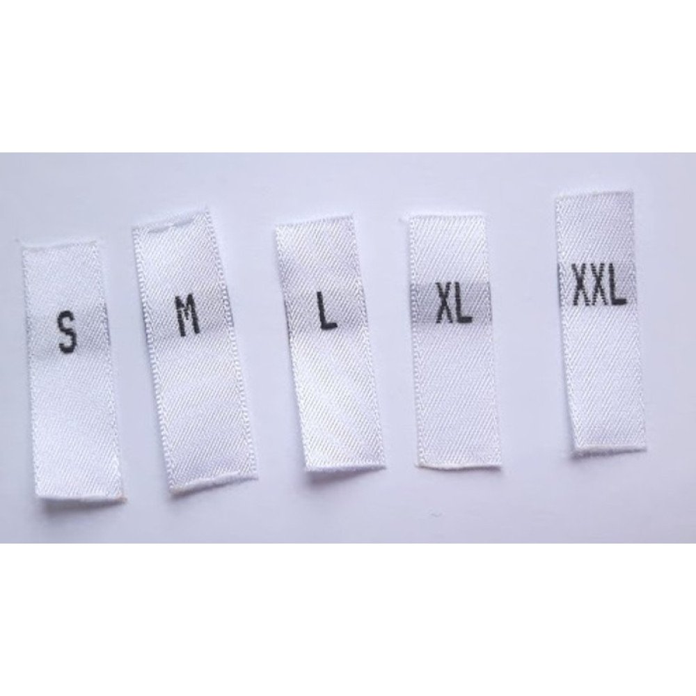 Various size labels for clothing. Give your product a perfect and finished look!