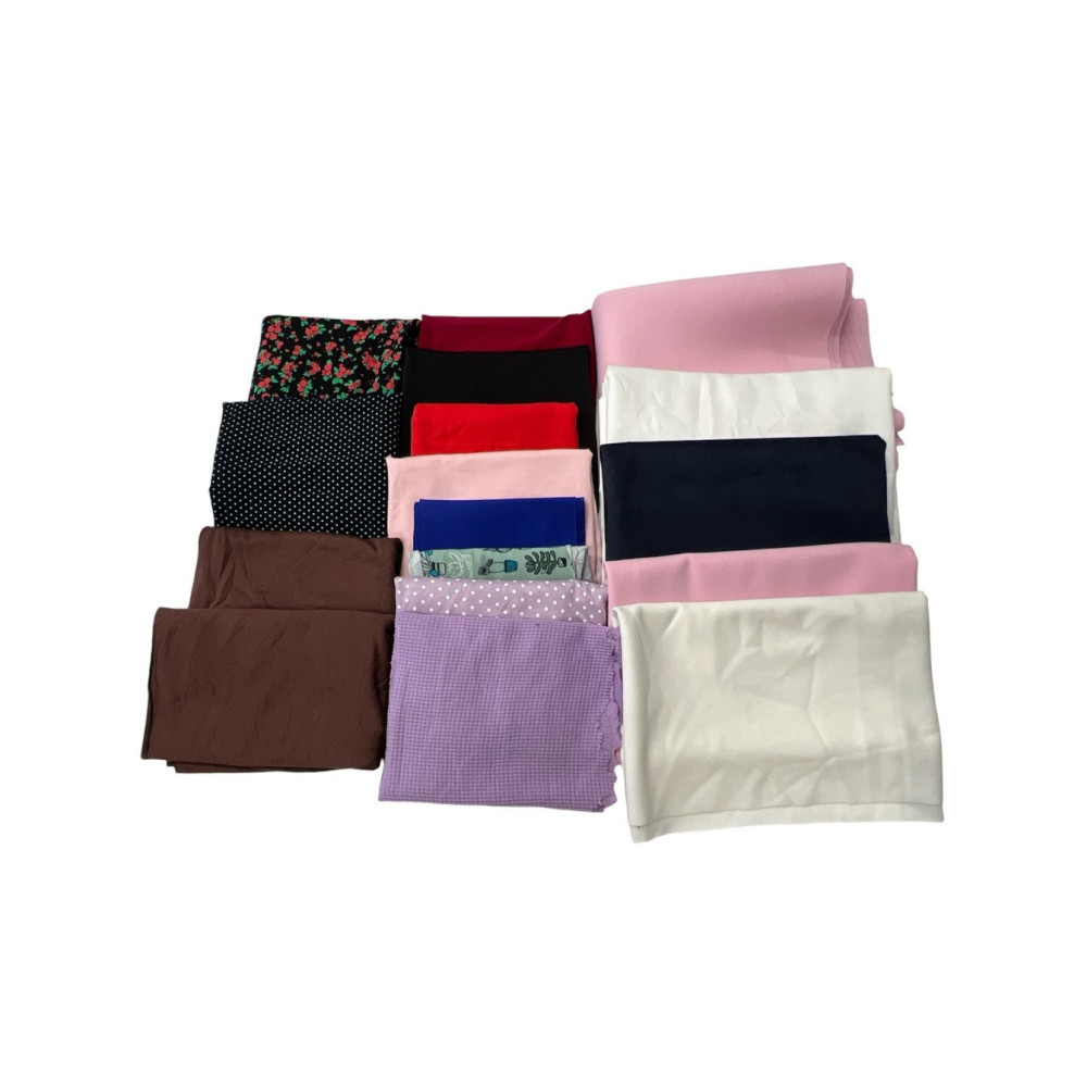 There are 17 residues in the sample. The sample consists of different types of knitwear. Size from 0,13 m to 0,65 m. The residues may be defective. The total is 6,41 m.
