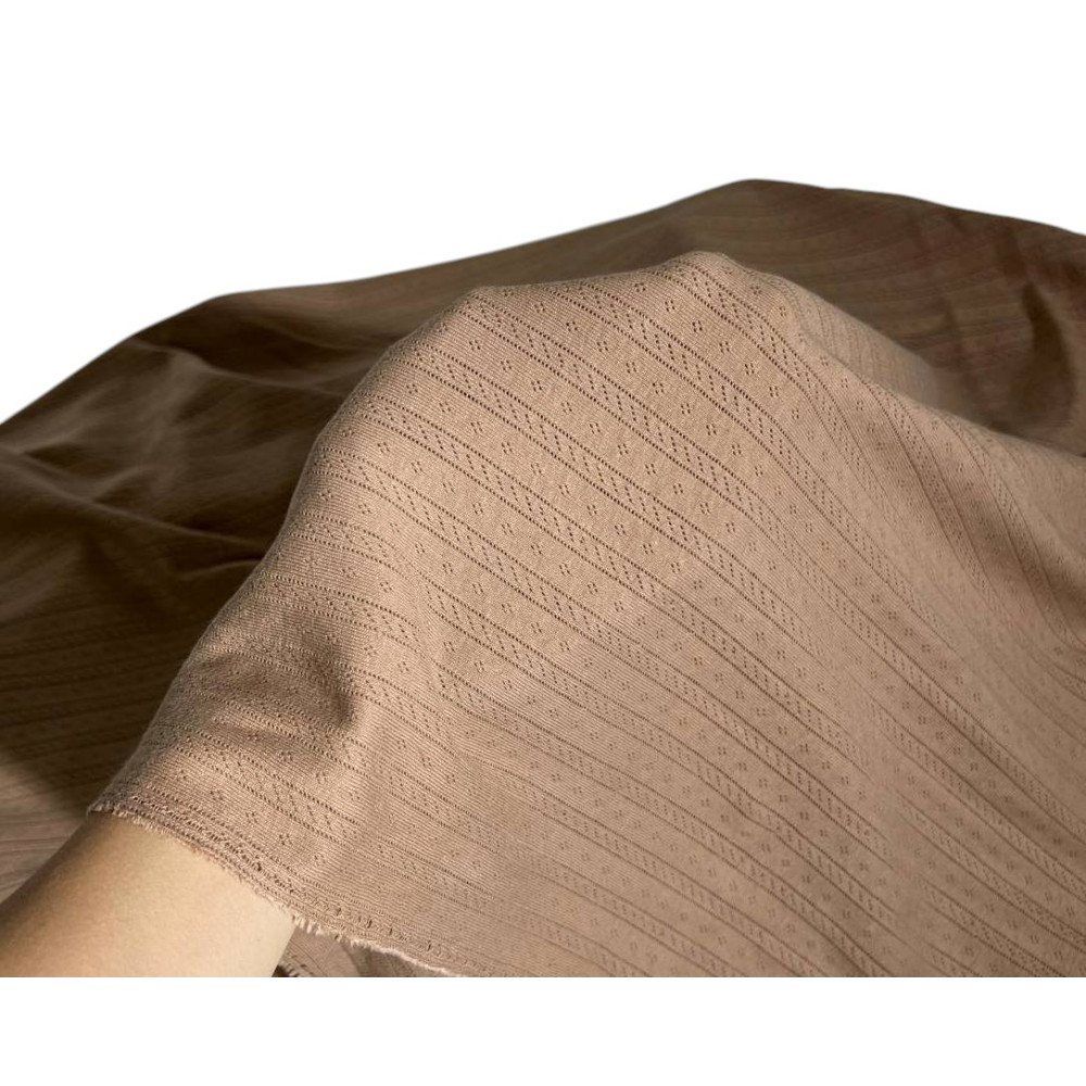 The Pointelle patterned knitted fabric is ideal for children's and adults' garments: blouses, bodysuits, pyjamas, dresses and t.t.