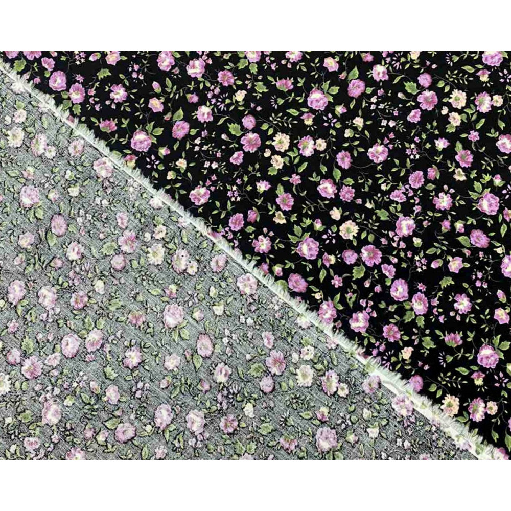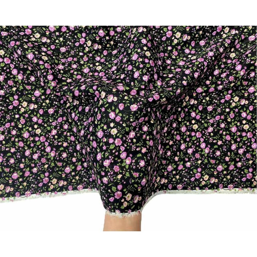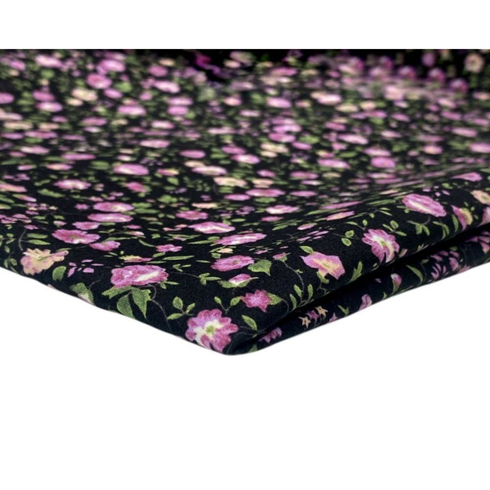 Poplin fabric Flowers in black
