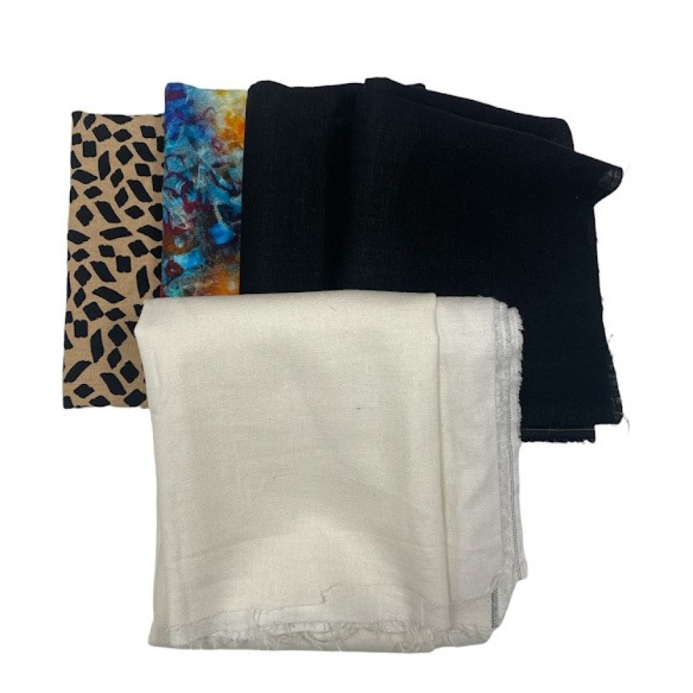 There are 5 residues in the sample. Most of the mixed composition is flax with viscose or cotton. Sizes from 0,44 to 0,75 m. Minor defects may occur. The total volume is 2,67 m.