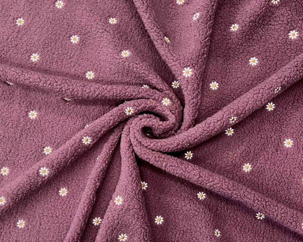Teddy fabric Daisy burgundy 265gr/kv.m.