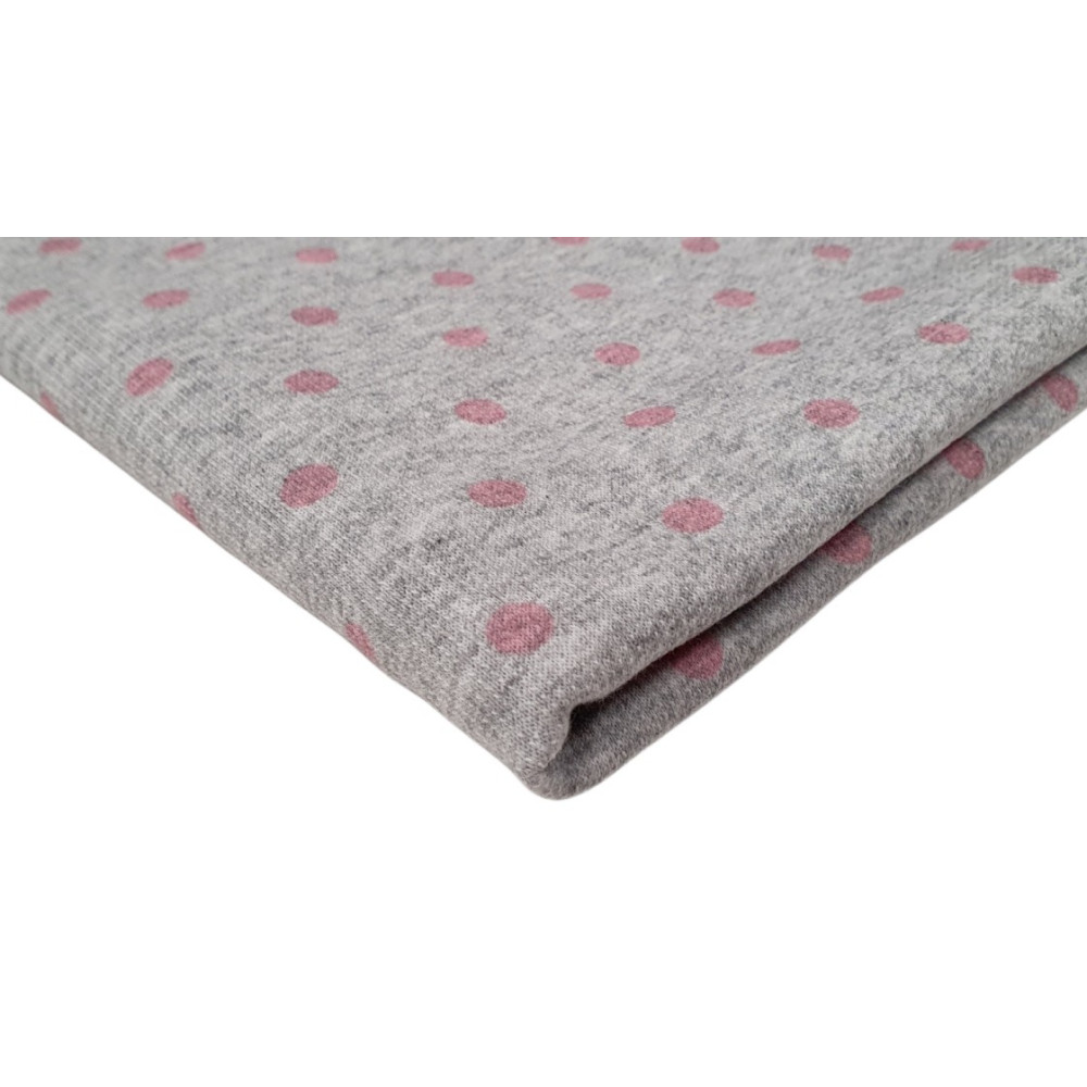 Kilpinis trikotažas Rožiniai taškeliai pilkame
