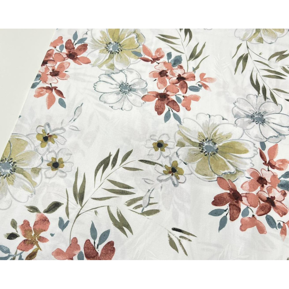 Medvilnė - drobė Rusvos gėlės baltame