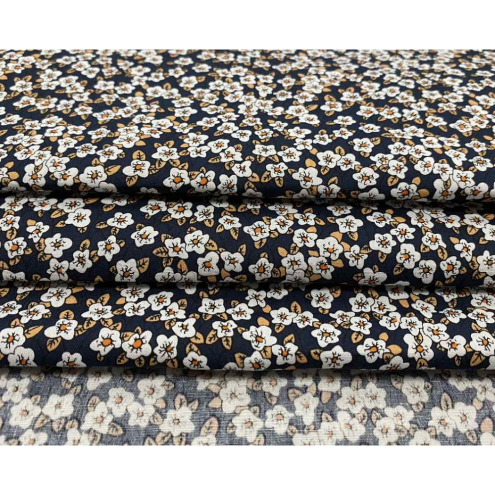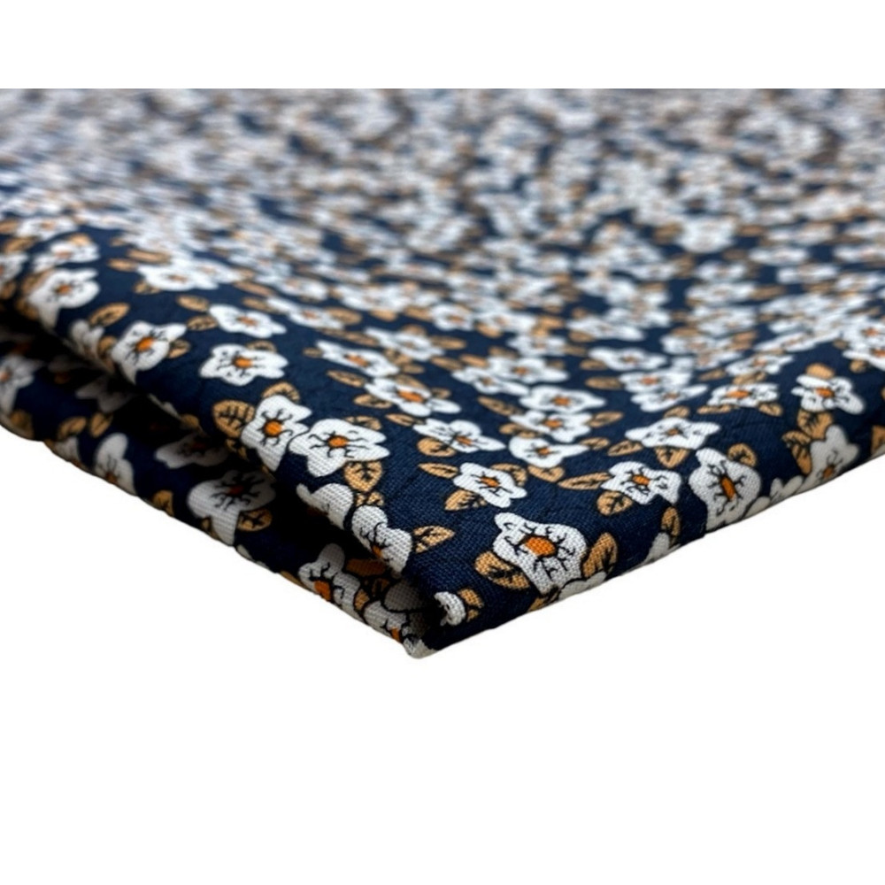 Medvilninis audinys Baltos gėlytės tamsiai mėlyname