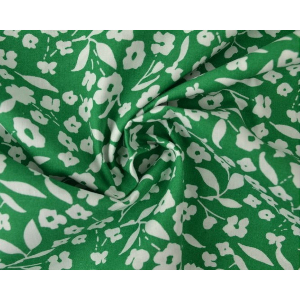 Medvilninis audinys Baltos gėlytės žaliame