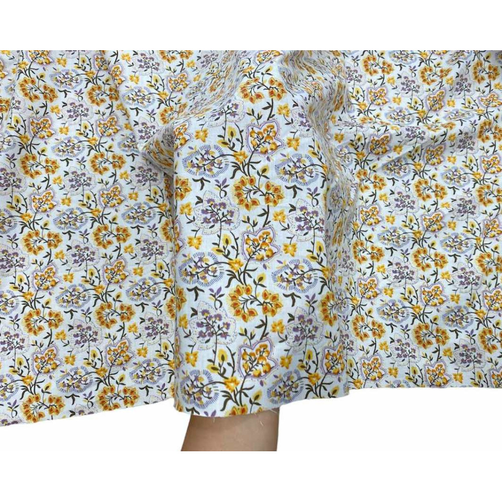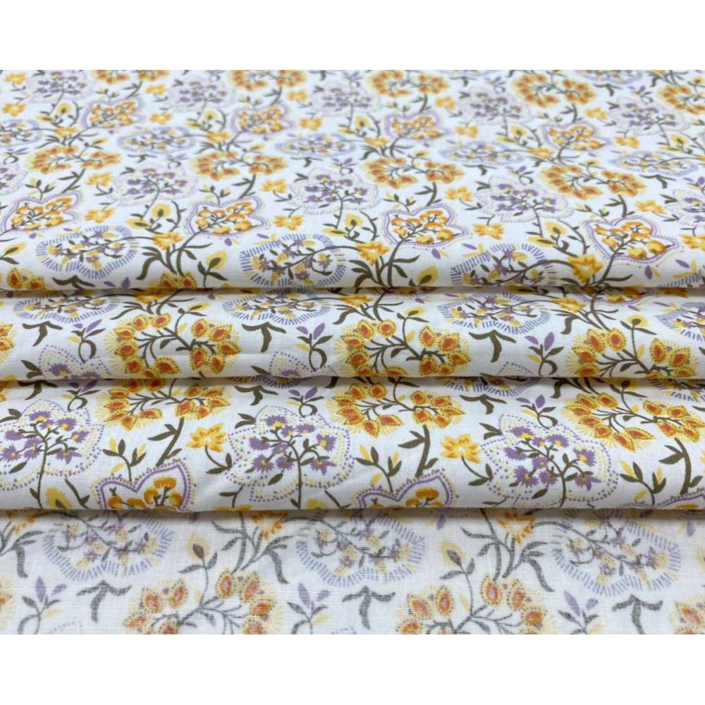 Medvilninis audinys Geltoni lapeliai baltame