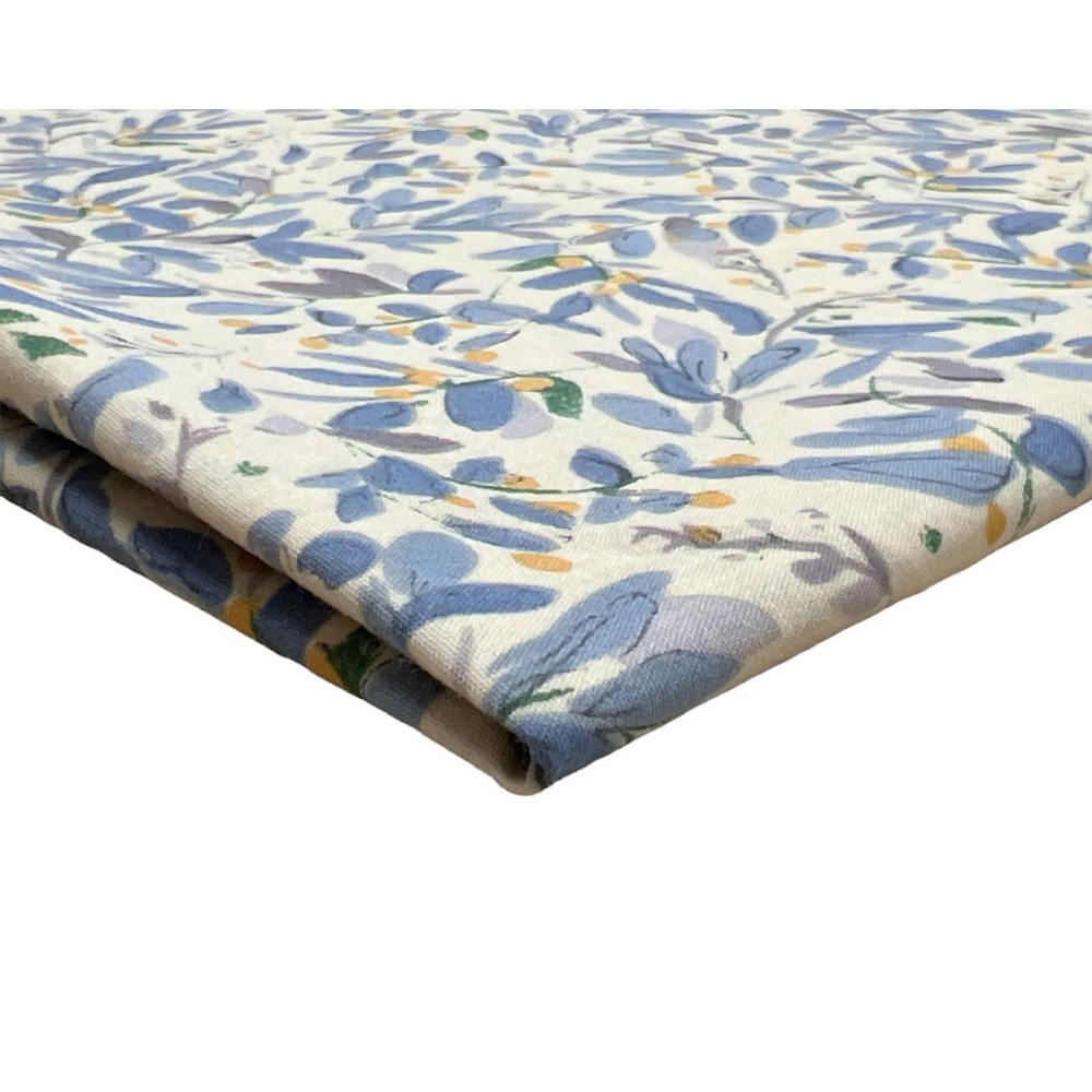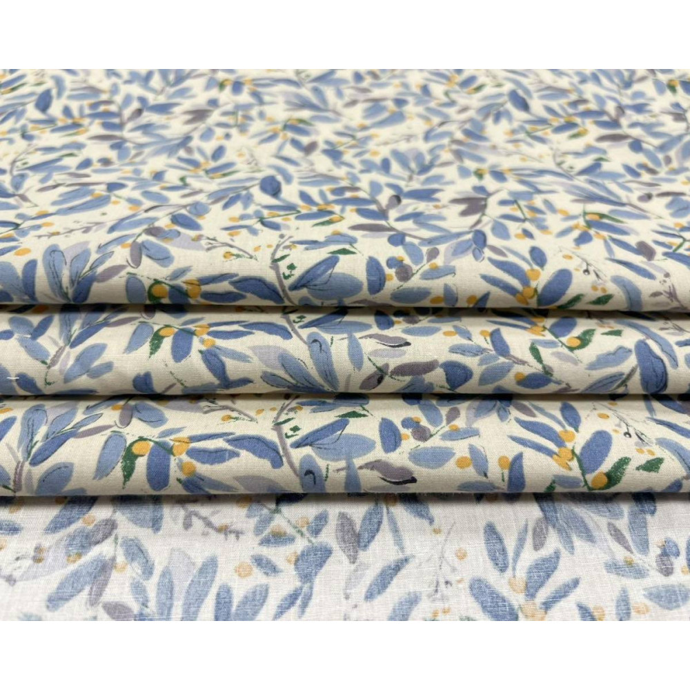 Medvilninis audinys Mėlyni lapeliai šviesiai pilkame