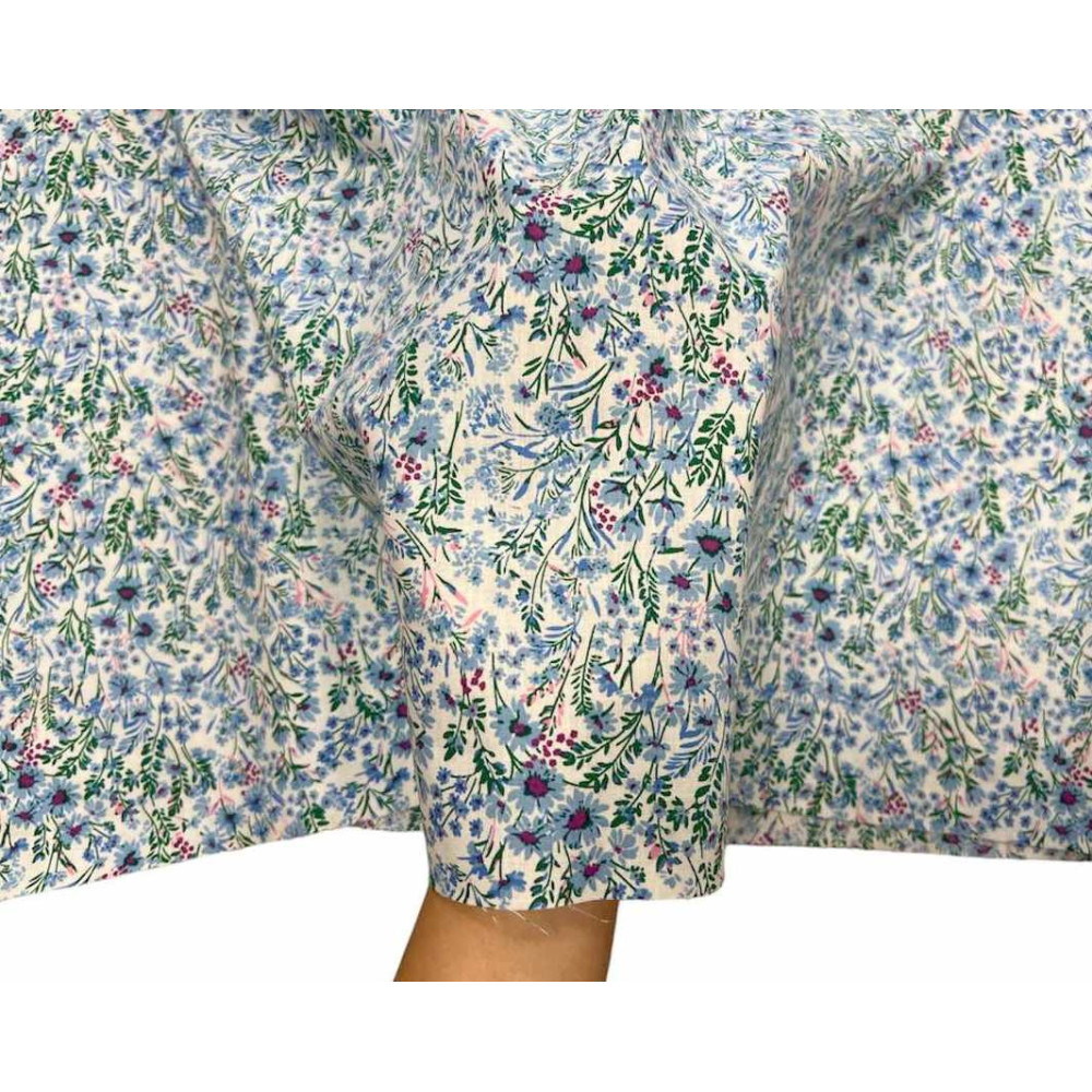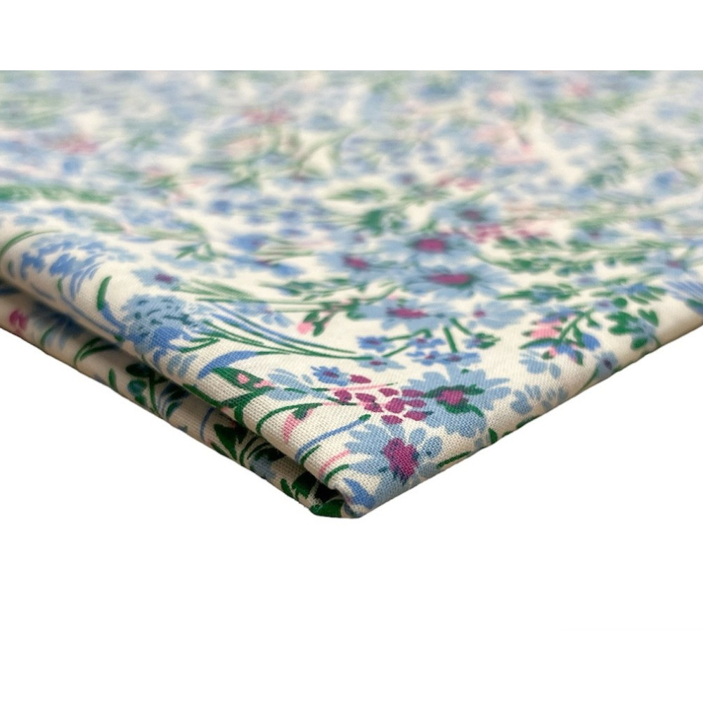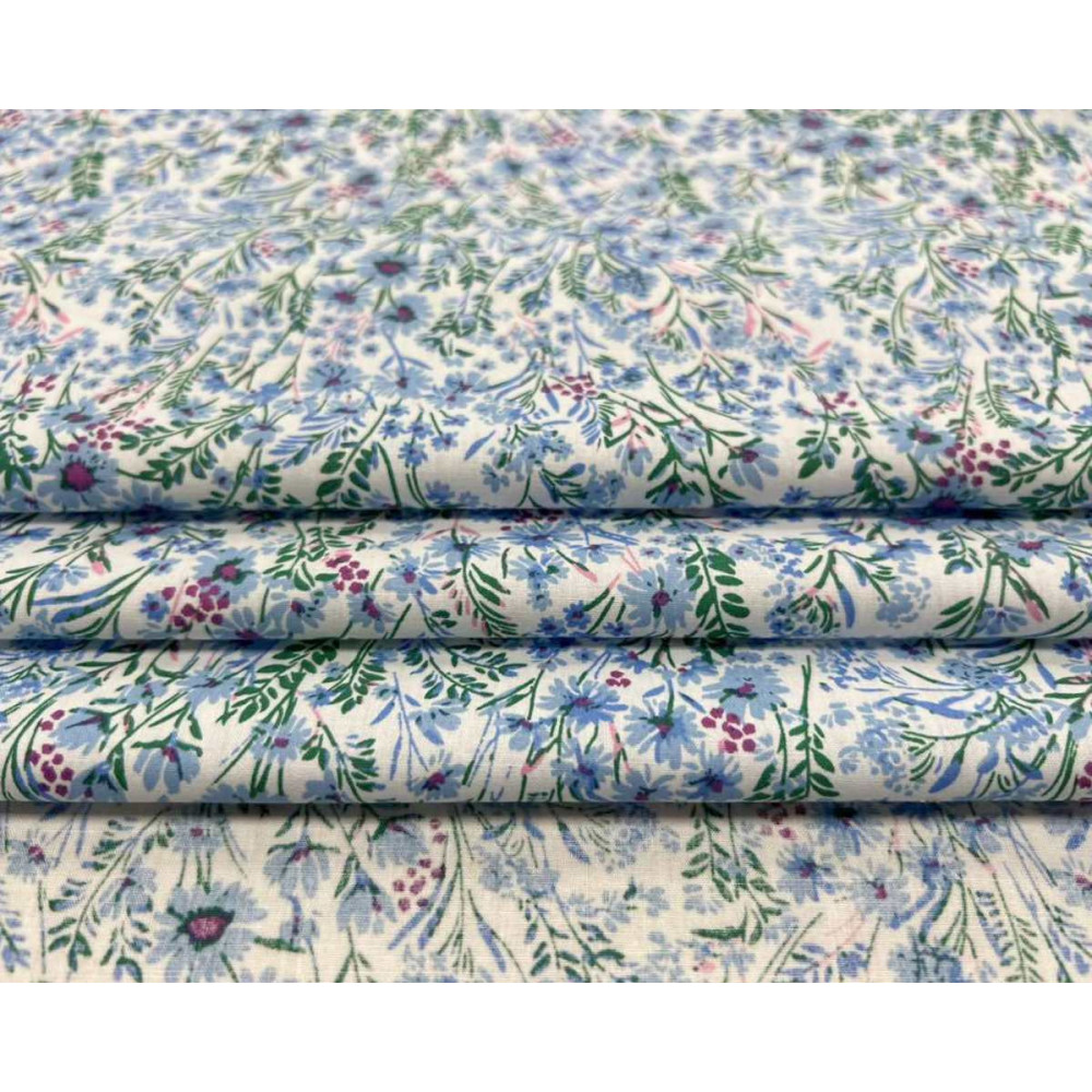 Medvilninis audinys Mėlynos gėlytės baltame
