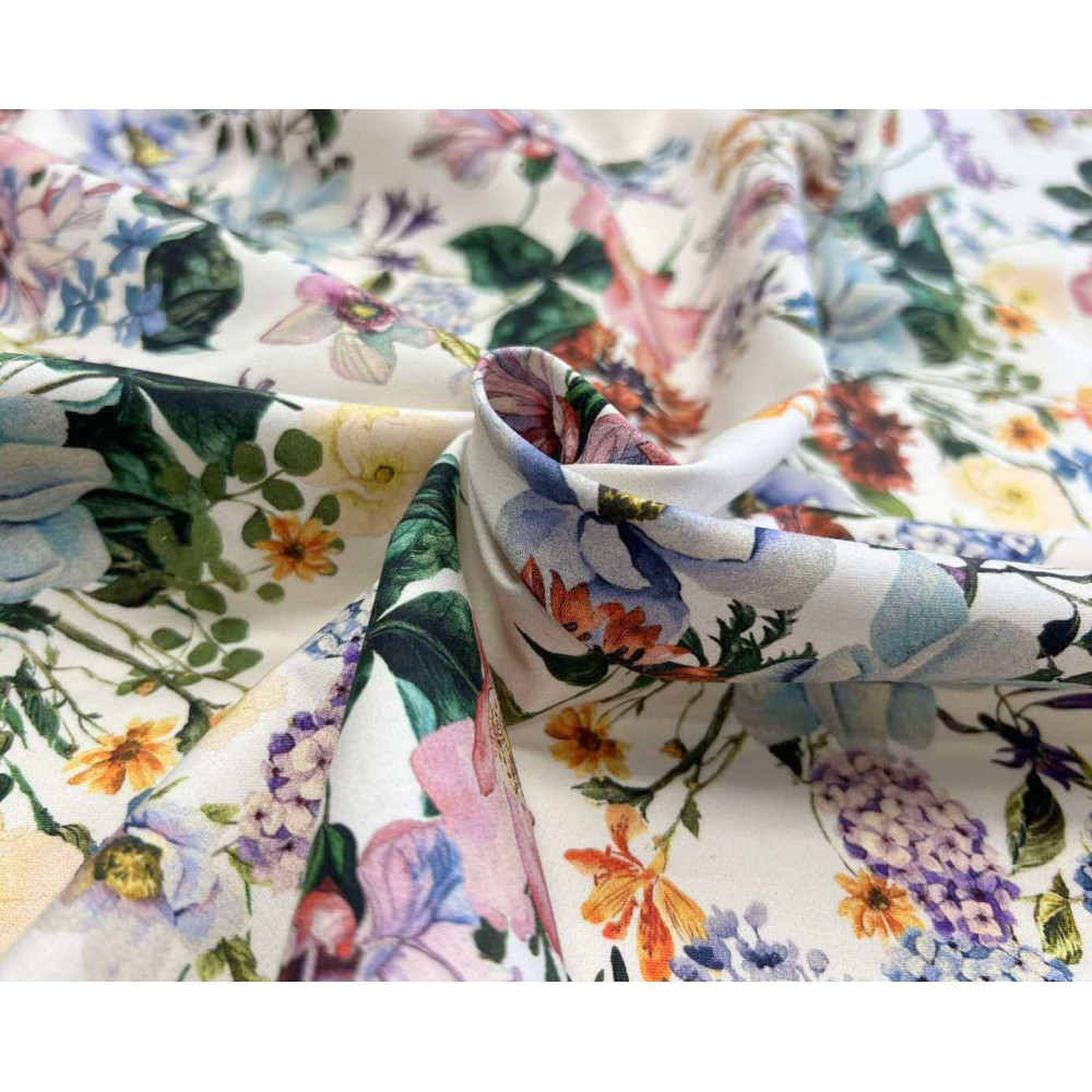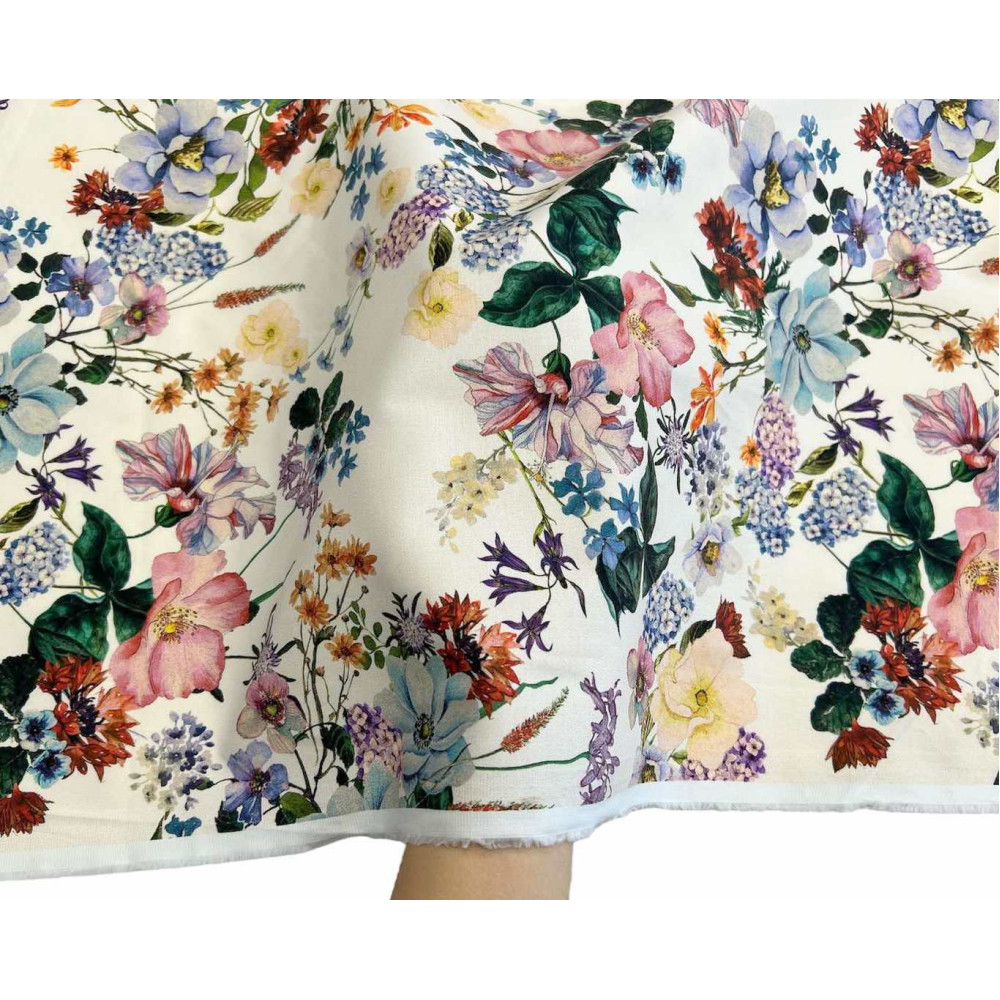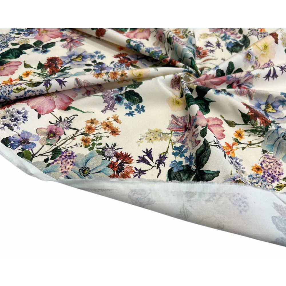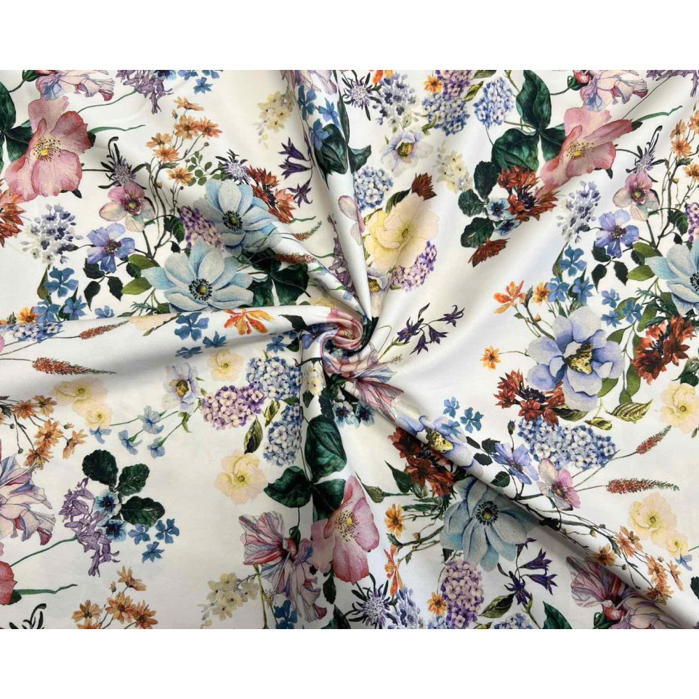 Medvilninis audinys su elastanu Gėlės gelsvame