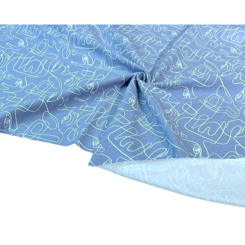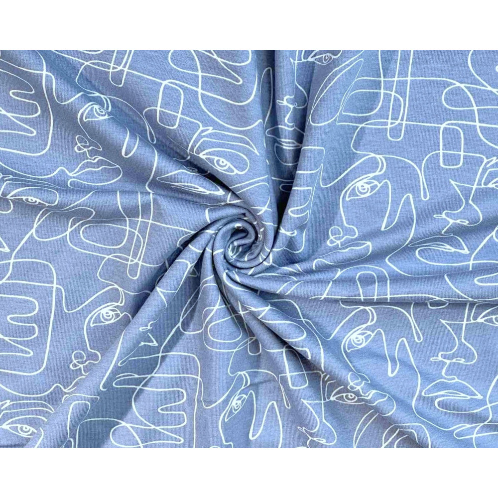 Medvilninis trikotažas (jersey) Veidai mėlyname