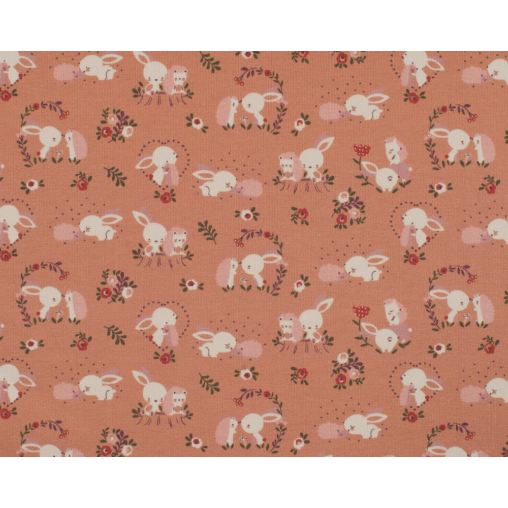 Medvilninis trikotažas (Jersey) Zuikutis ir ežiukas rusvame