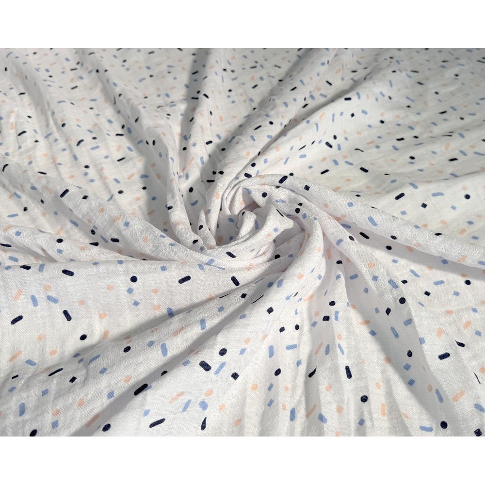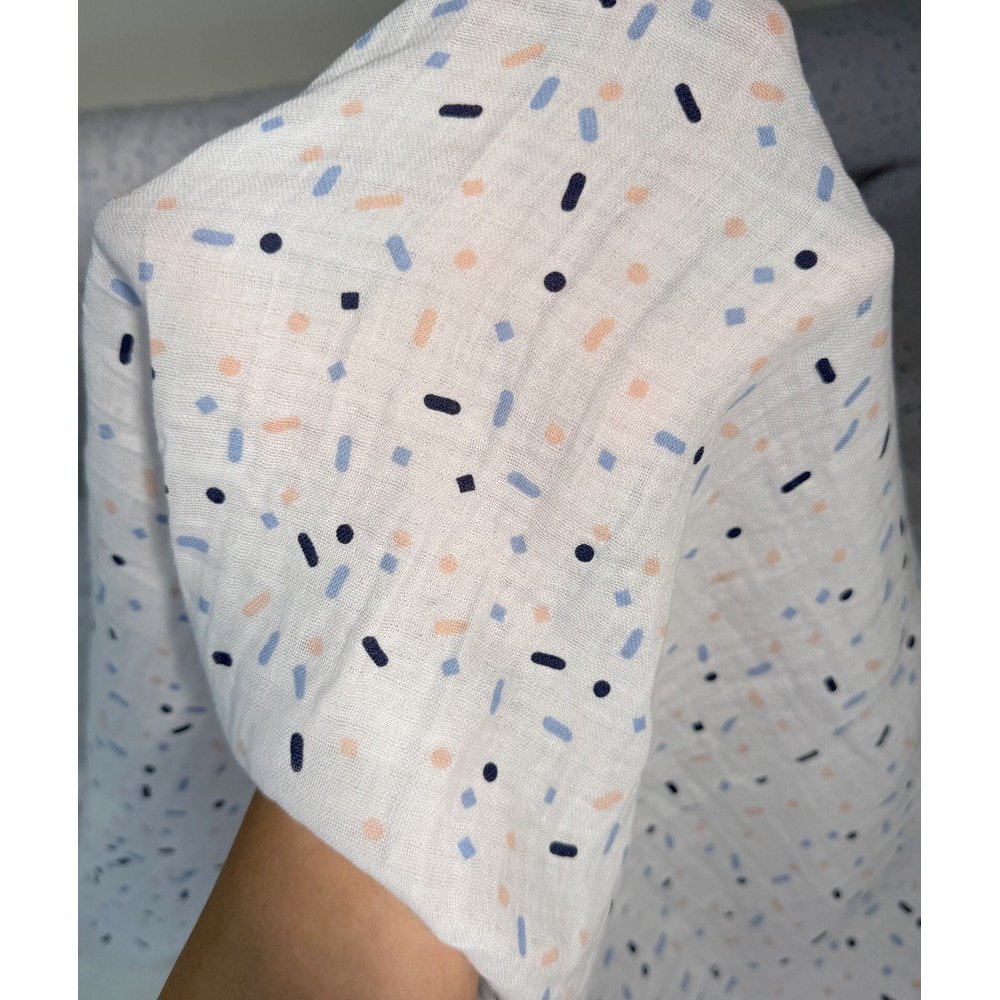 Medvilninis audinys muslinas - lengvumo, švelnumo, natūralumo garantas! Double gauze medvilnė yra truputį natūraliai pabanguota, „pagofruota“, dėl to audinys turi dar daugiau išskirtinumo ir žavesio.