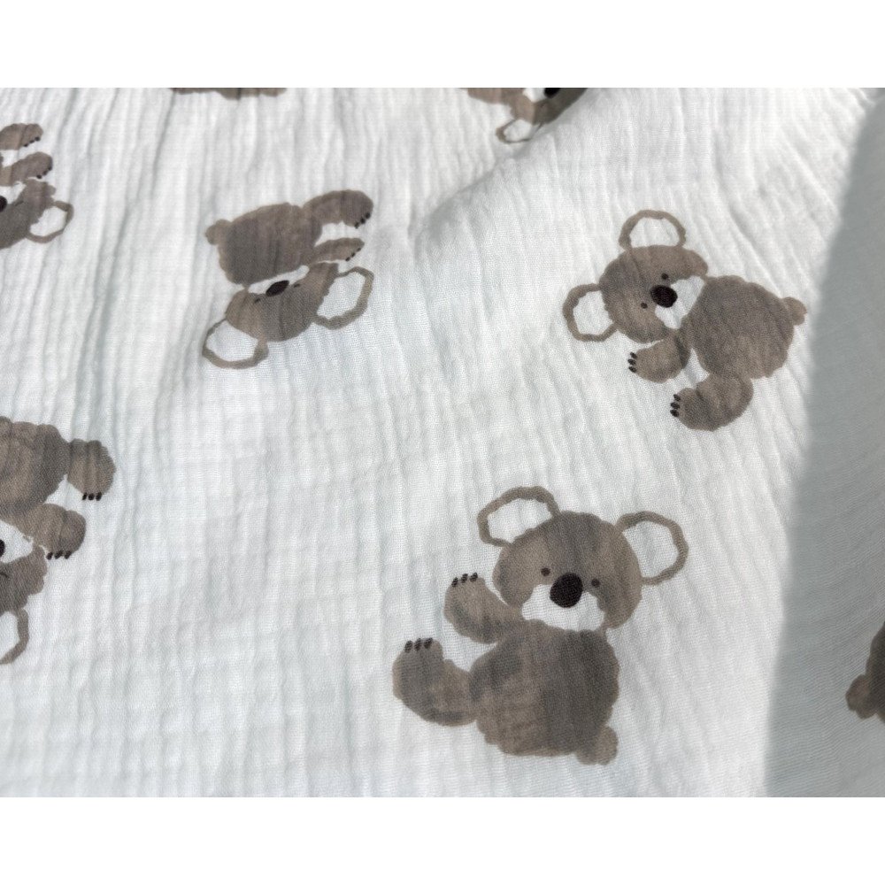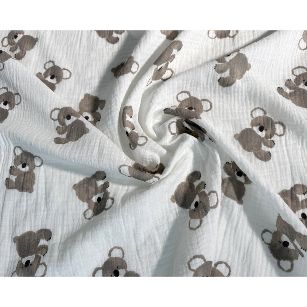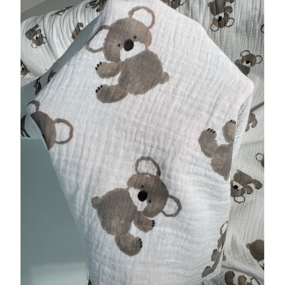 Medvilninis audinys muslinas - lengvumo, švelnumo, natūralumo garantas! Double gauze medvilnė yra truputį natūraliai pabanguota, „pagofruota“, dėl to audinys turi dar daugiau išskirtinumo ir žavesio.