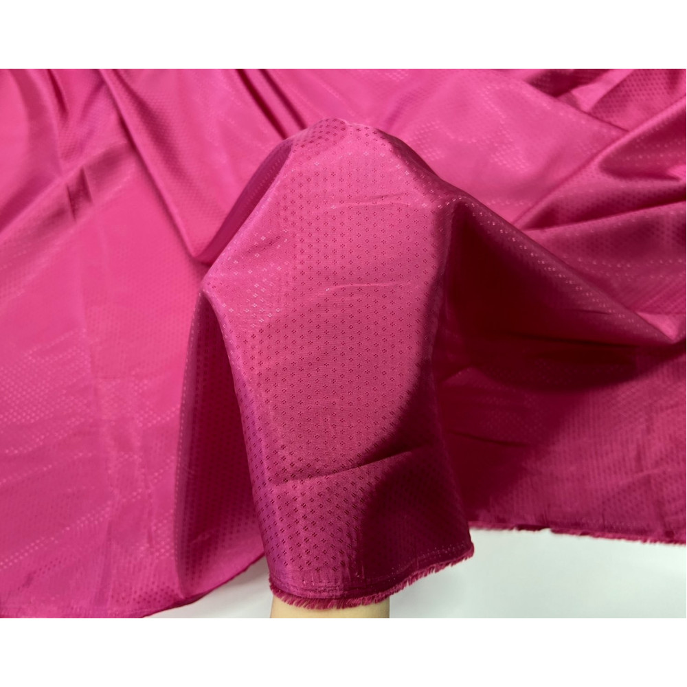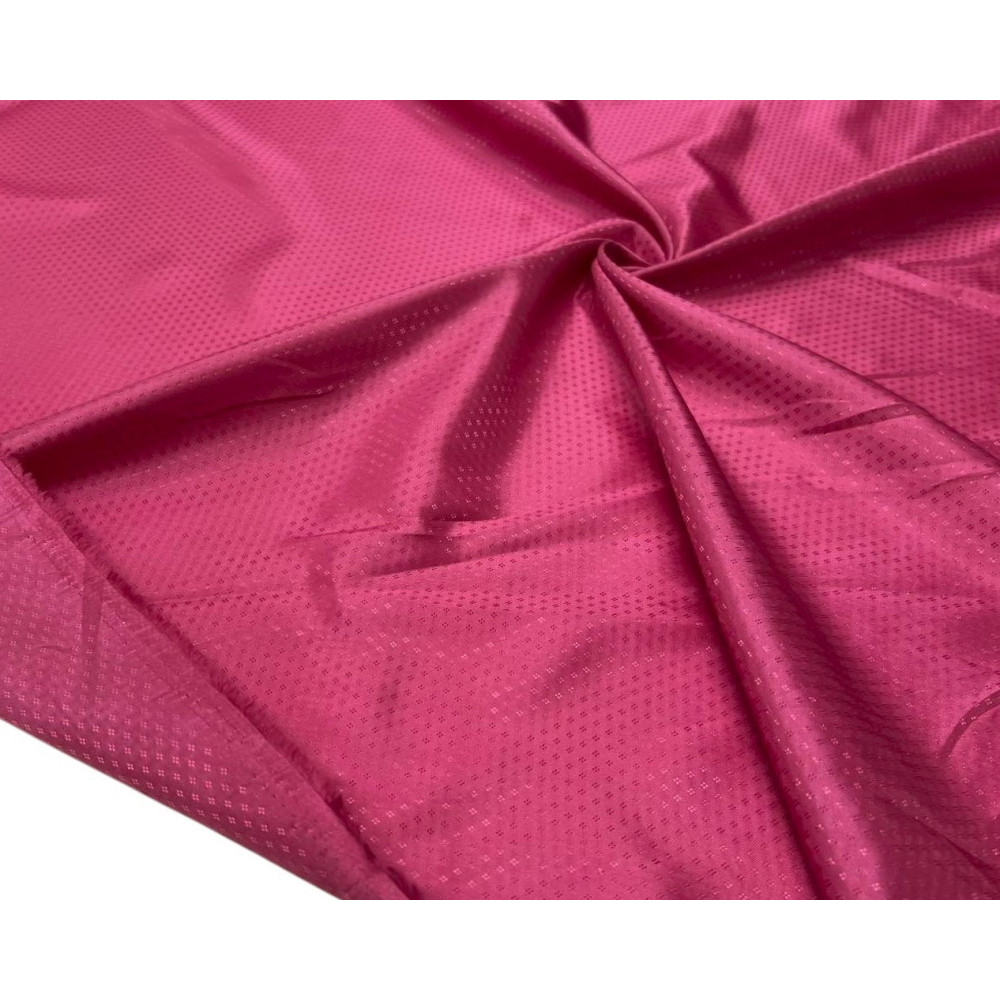 Šis pamušalinis audinys turi blizgesio, yra plonas, lengvai krentantis, šiek tiek persimato. Audinio raštas matomas iš abiejų pusių.