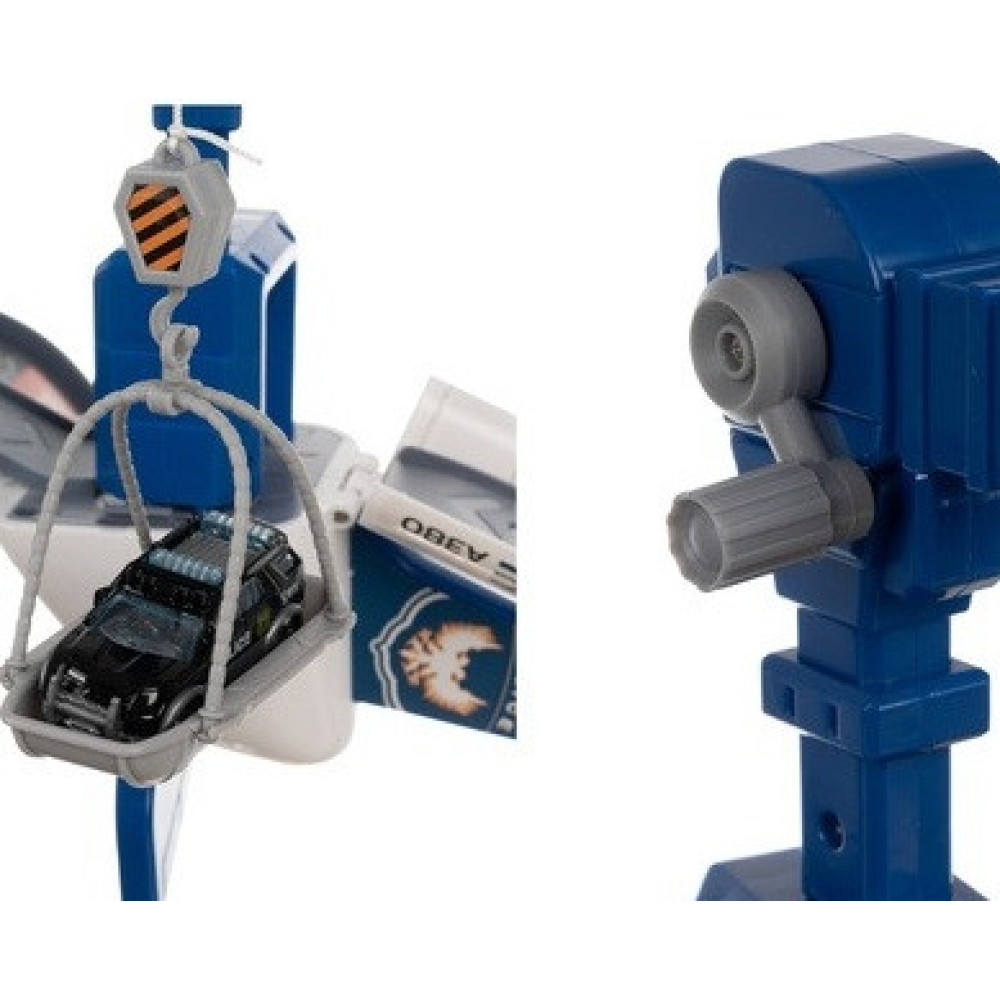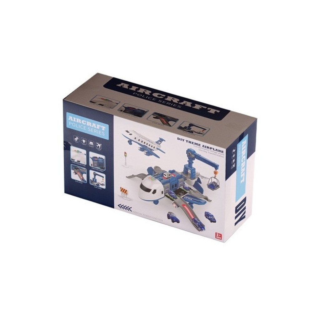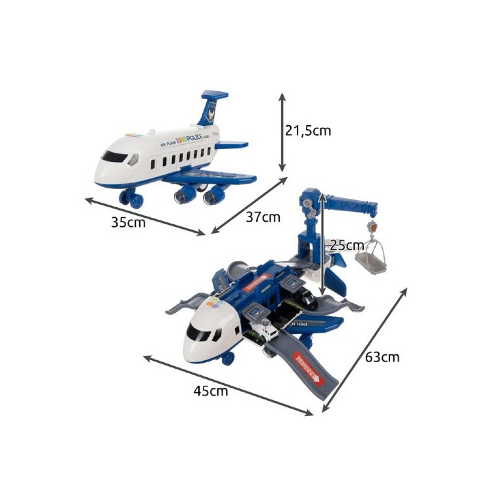 Lėktuvas su atidaromais šonais, rampa, automobilių paleidimo įrenginiu ir besisukančiu kranu.