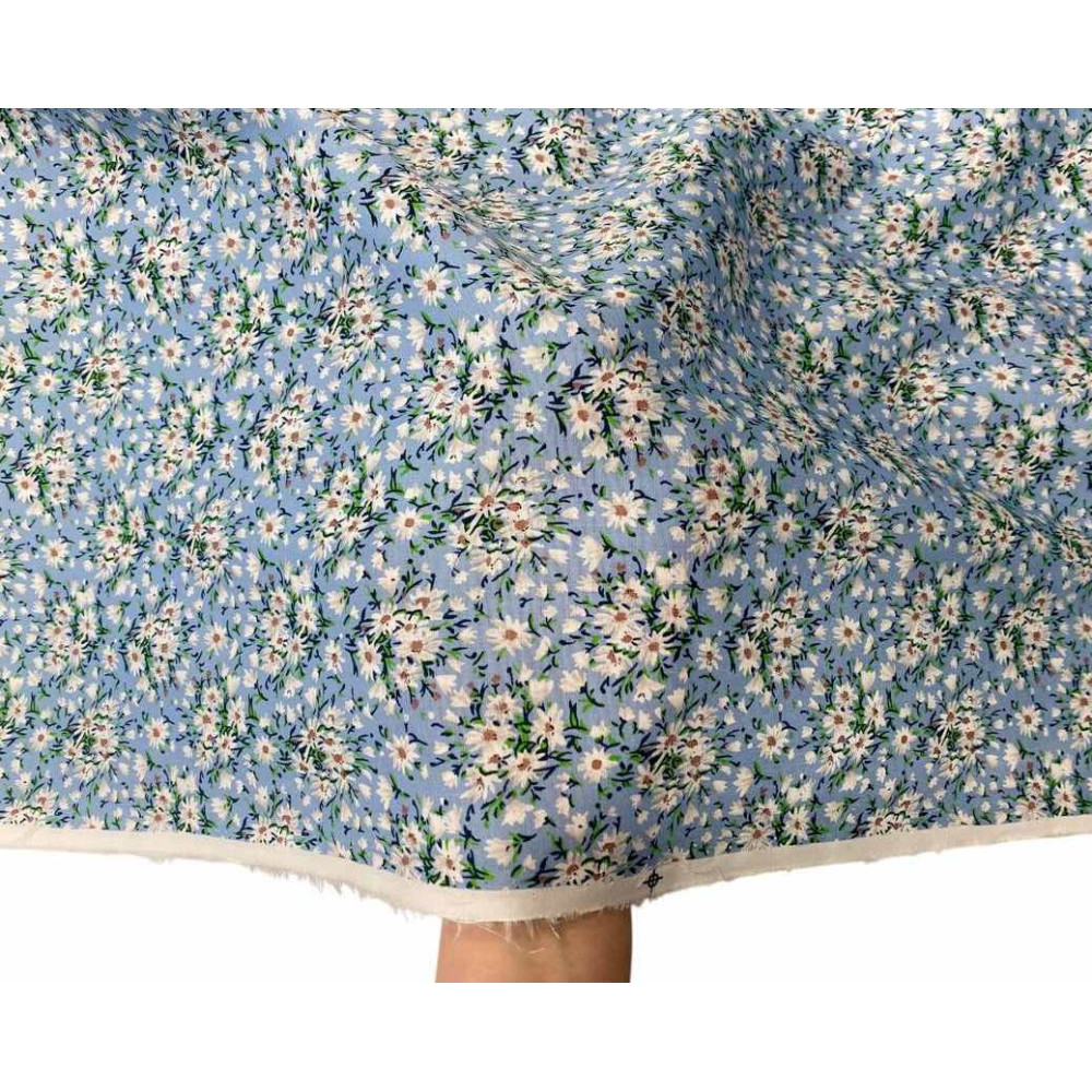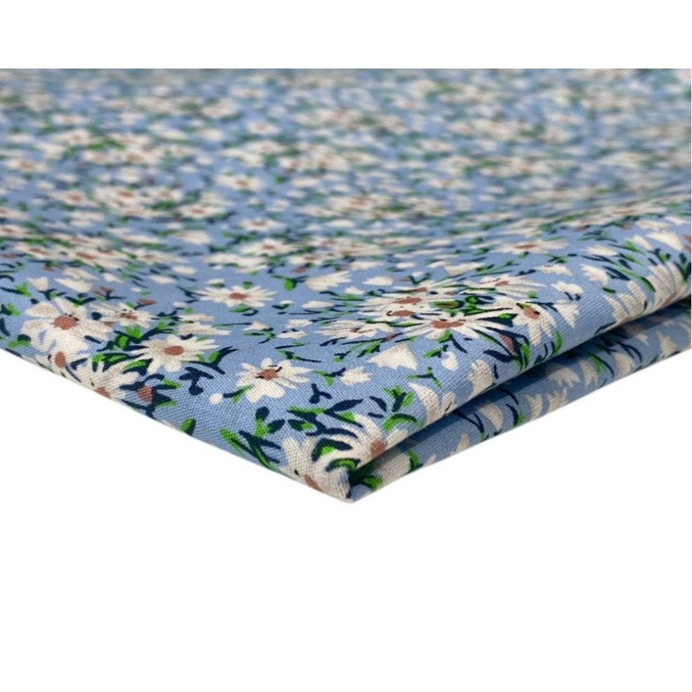 Poplin audinys Gėlytės melsvame