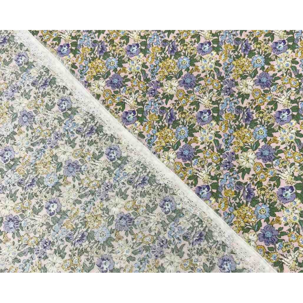 Poplin audinys Gėlytės rausvame