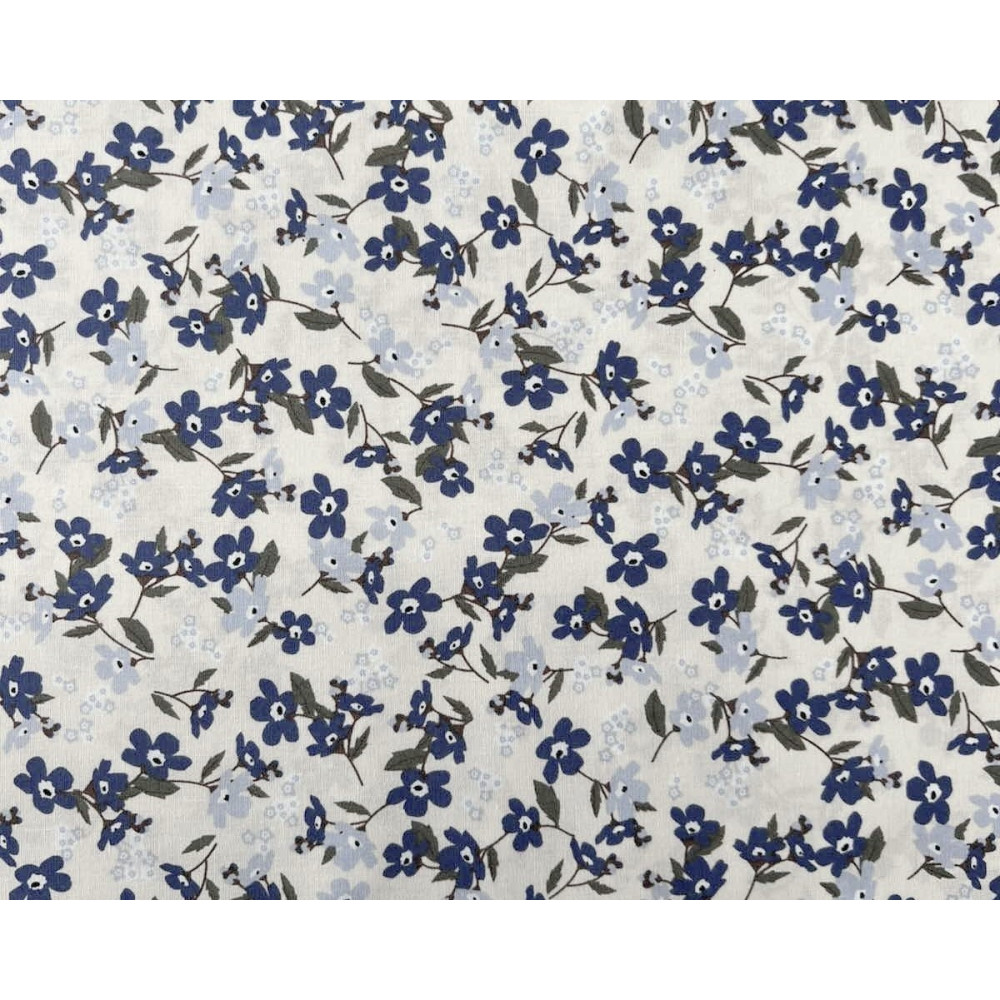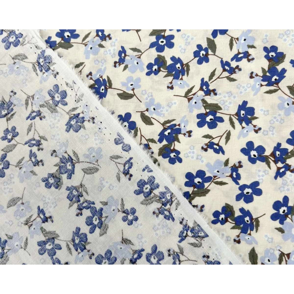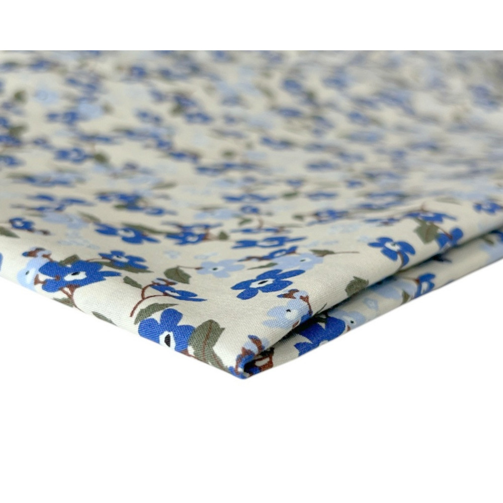 Poplin audinys Mėlynos gėlytės gelsvame