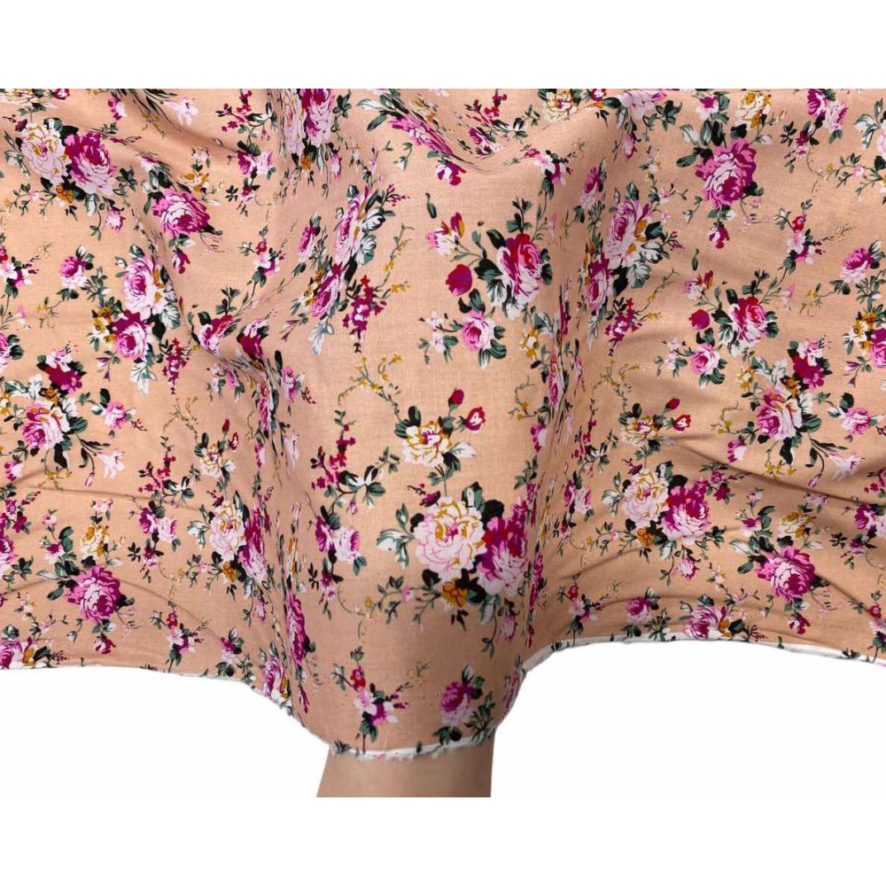 Poplin audinys Rožės rausvame