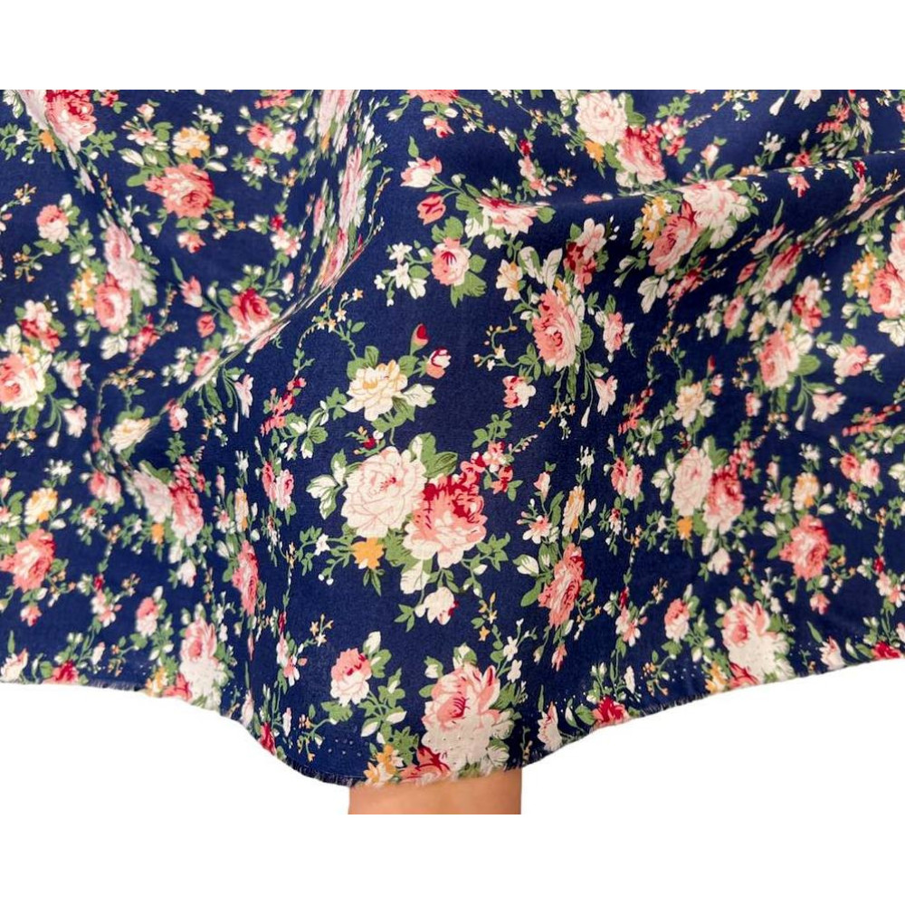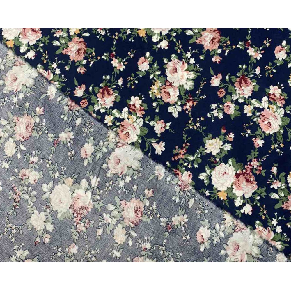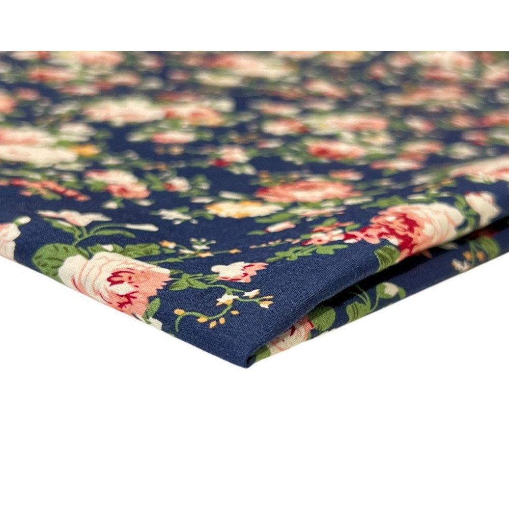 Poplin audinys Rožės tamsiai mėlyname