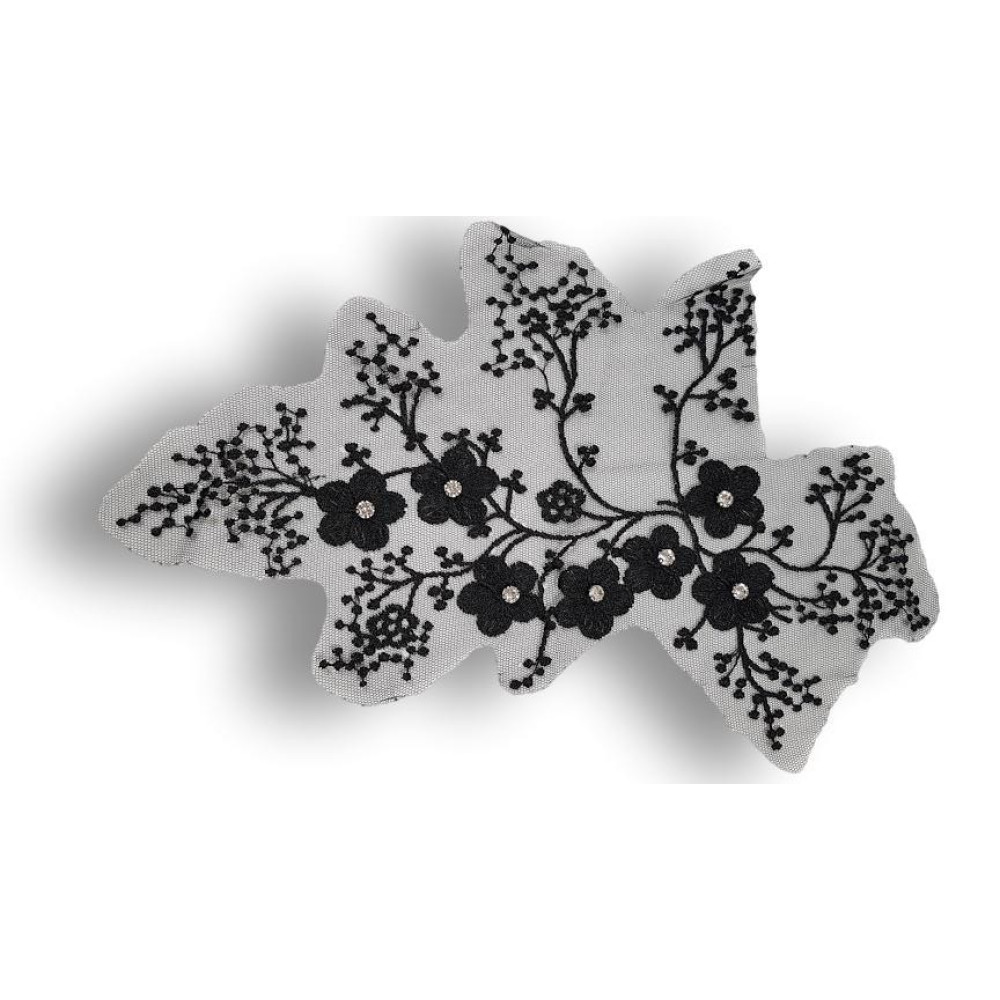 Prisiuvama gipiūro aplikacija ant tiulio su kristalais