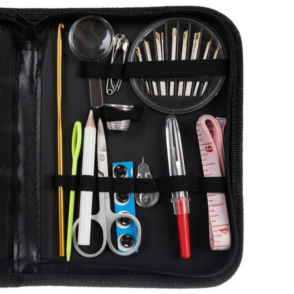 Siuvimo reikmenų rinkinys yra itin kompaktiškas bei turi viską, ko gali prireikti netikėtai išplyšus sagai ar iširus siūlei kelionės metu. Taip pat šis dėklas su siuvimo priedais bus puiki dovana tam, kuris nori pradėti siūti.