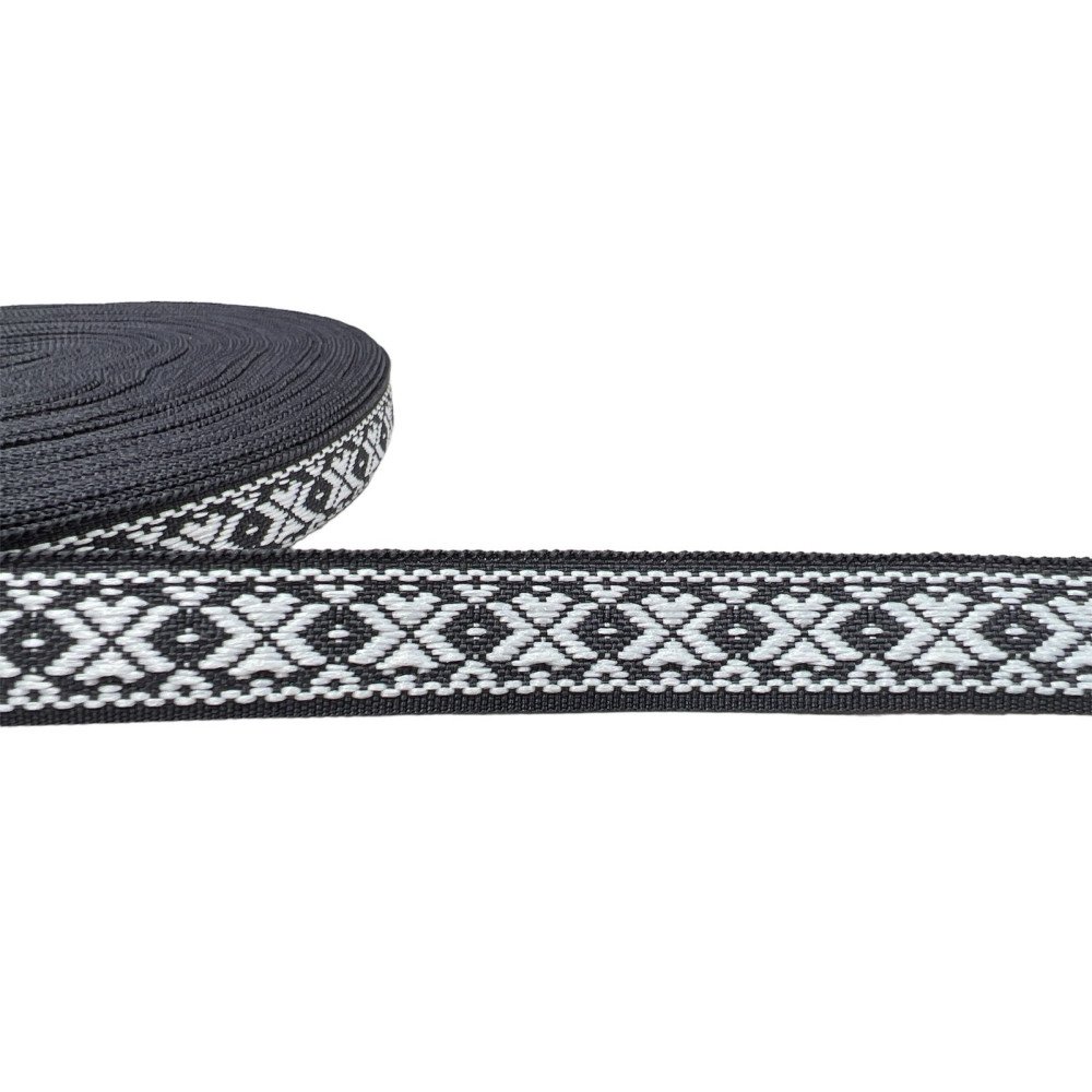 Tautinė juostelė 15mm Pilka balta