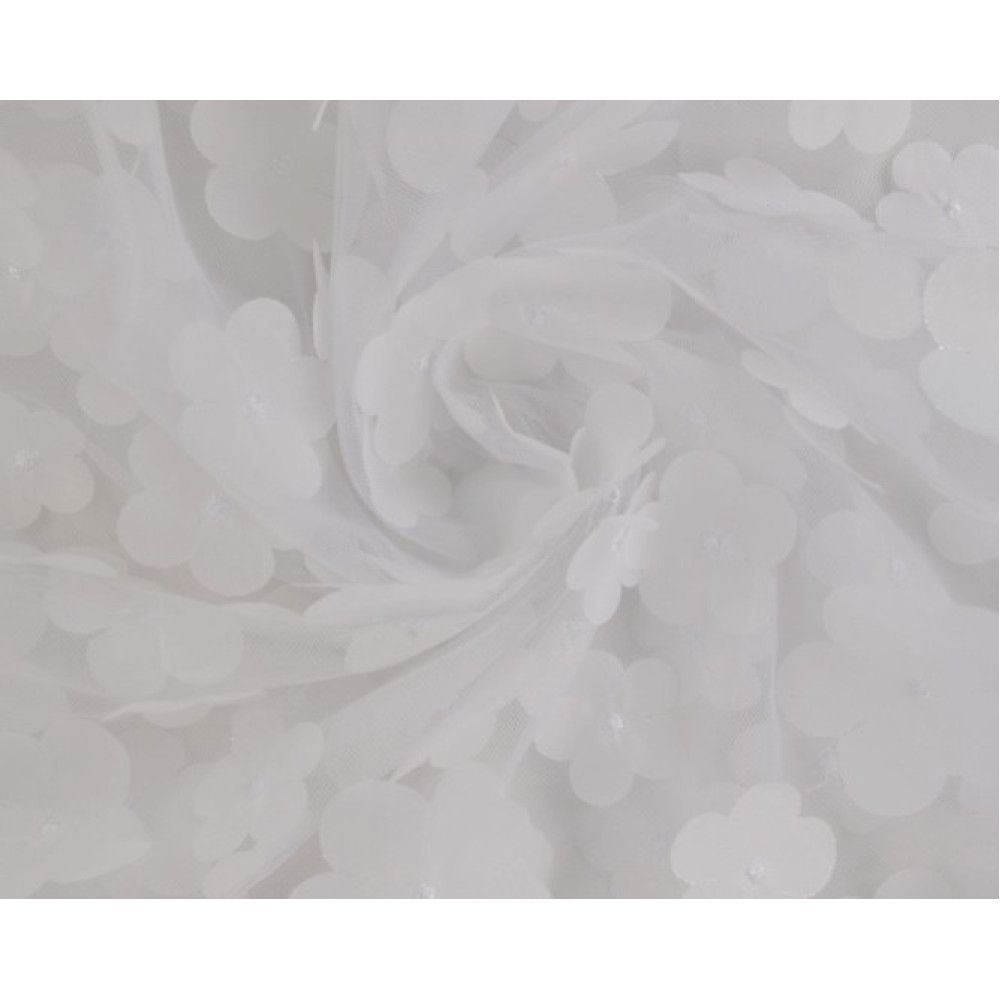 Šis minkštas tiulis dekoruotas karpytomis gėlytėmis yra itin puošnus. Tiulis gali būti naudojamas siuvant arba dekoruojant įvairius drabužius.