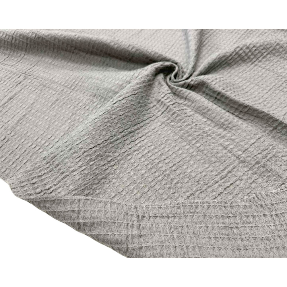 Minkštas, vidutinio storumo, gražaus kritimo, natūralios medvilnės vaflinis audinys puikiai tiks siūti: rankšluosčiams, chalatams, pledams ir pan.