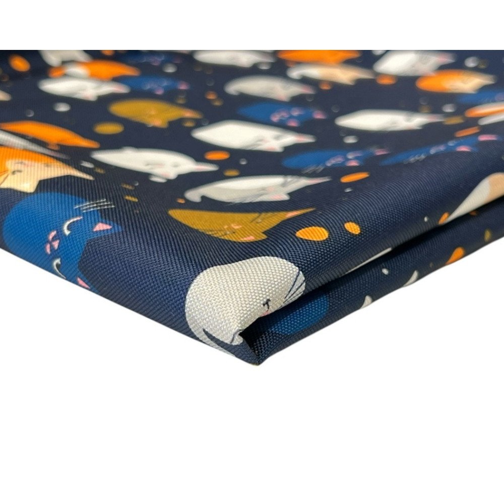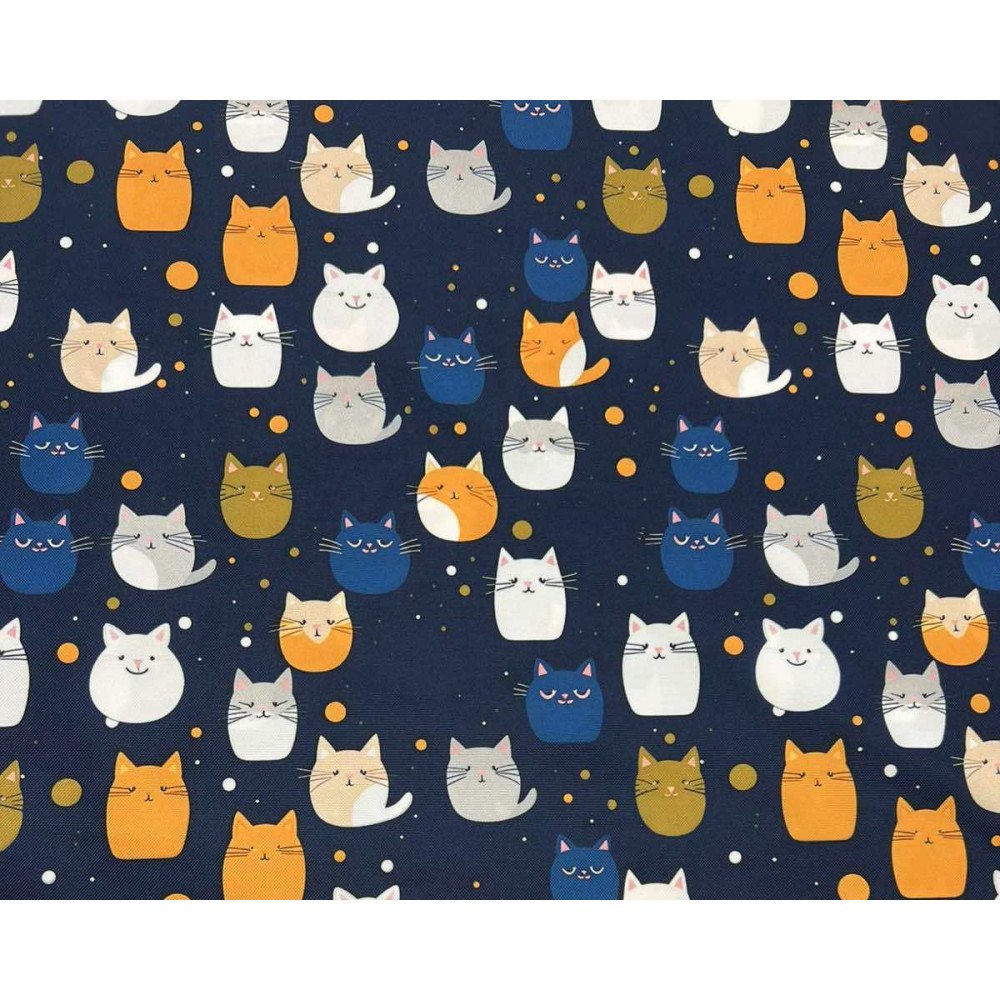 Vandeniui atsparus audinys Oxford Katinėliai tamsiai mėlyname